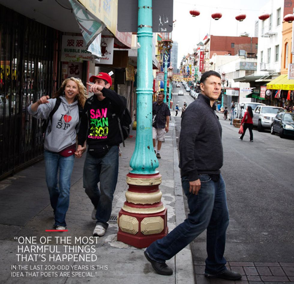 Author of three books of poetry, including last year’s award-winning Come on All You Ghosts, editor at the poetry press Wave Books, and 2011 Guggenheim fellow, Matthew Zapruder is the kind of person you move to San Francisco in the hopes of meeting at a party. The kind who resides in North Beach on the very street where City Lights cofounder Lawrence Ferlinghetti lived and walks the city gathering impressions so he can translate them into soul-searing free verse that gets touted as the best poetry of the year by Booklist and Publishers Weekly. Conversation with Zapruder is guaranteed to be interesting. What it won’t be is esoteric. “One of the most harmful things that’s happened in the last 200-odd years is this idea that poets are special,” says the Washington, D.C. native, “that they’re extra-sensitive creatures who live in a dream world and perceive things others don’t. There’s nothing further from the truth. I’m exactly like everybody else. That’s what gives poems strength, value, and worth.” Well, maybe not exactly like everyone else because while we’re pounding away on keyboards and analyzing spreadsheets, he’s sitting at his kitchen table or his desk at the Writers’ Grotto attempting to pin down the ineffable. “All those huge and often contradictory feelings that exist just below our functional selves are very real, and everyone is having them all the time,” says Zapruder. “That’s the source material of poetry. Every single person is a giant mystery.