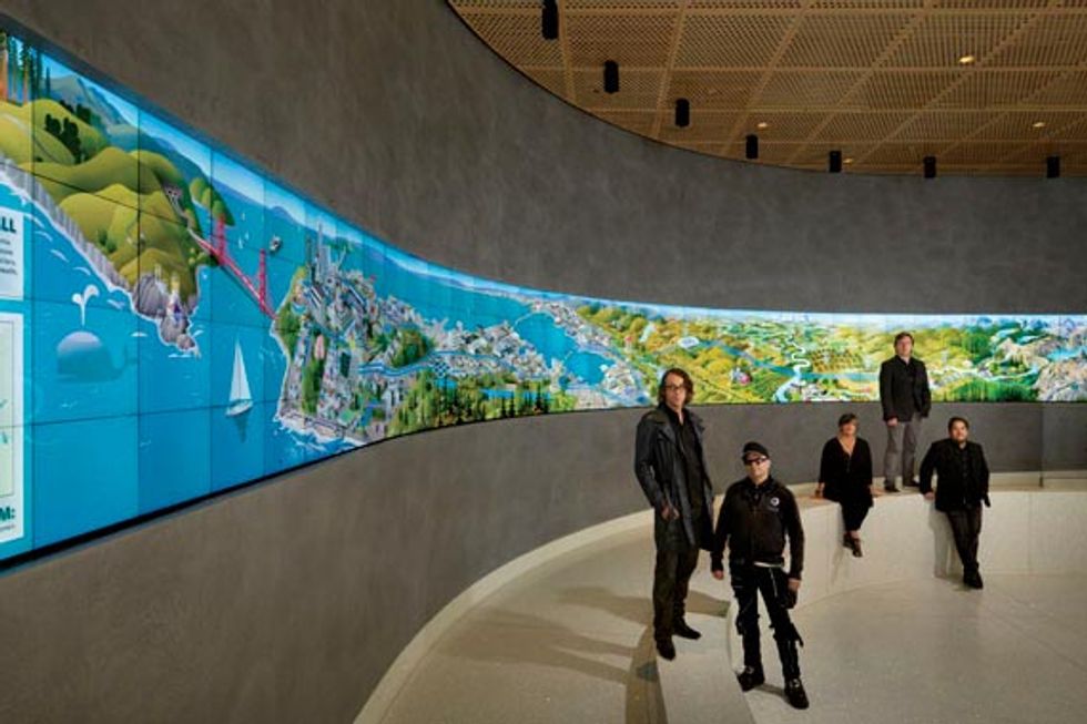 Obscura’s mesmerizing achievements have also been seen here at home. These are the guys behind projections at SFMOMA’s Buckminster Fuller exhibit this past spring, on the Westfield San Francisco Centre dome, and most recently, in the lobby of the new LEED-platinum Public Utilities Commission Building.