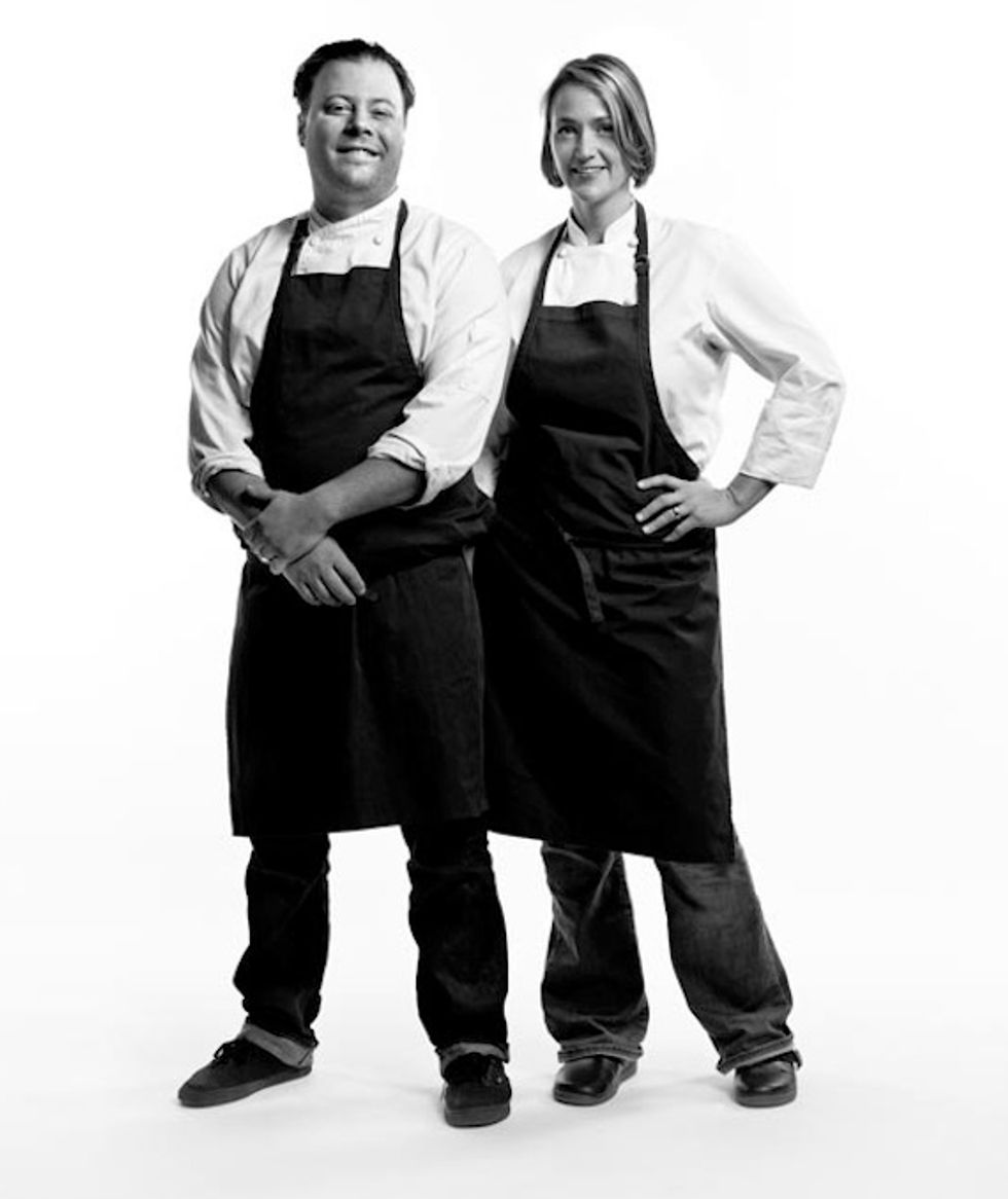 It’s a family affair at Rich Table, Hayes Valley’s new restaurant that, despite its elegance, feels like the household dining room of wife-and-husband duo Sarah and Evan Rich (she’s a native Texan, he’s a Jersey boy). The couple, who made a name for themselves with their pop-up Chefs’ Night Off, has worked for 10 years in notable New York kitchens—Bouley, Mas (Farmhouse)—and SF restaurants—Michael Mina (her), Quince (him), and Coi (both). But they’ve always had their hearts set on opening their own place. Dishes at Rich Table are equal parts beauty and flavor bomb, like paper-thin slices of Pacific halibut with pork belly and turnip green purée or buttermilk-poached chicken with corn and pea shoots.