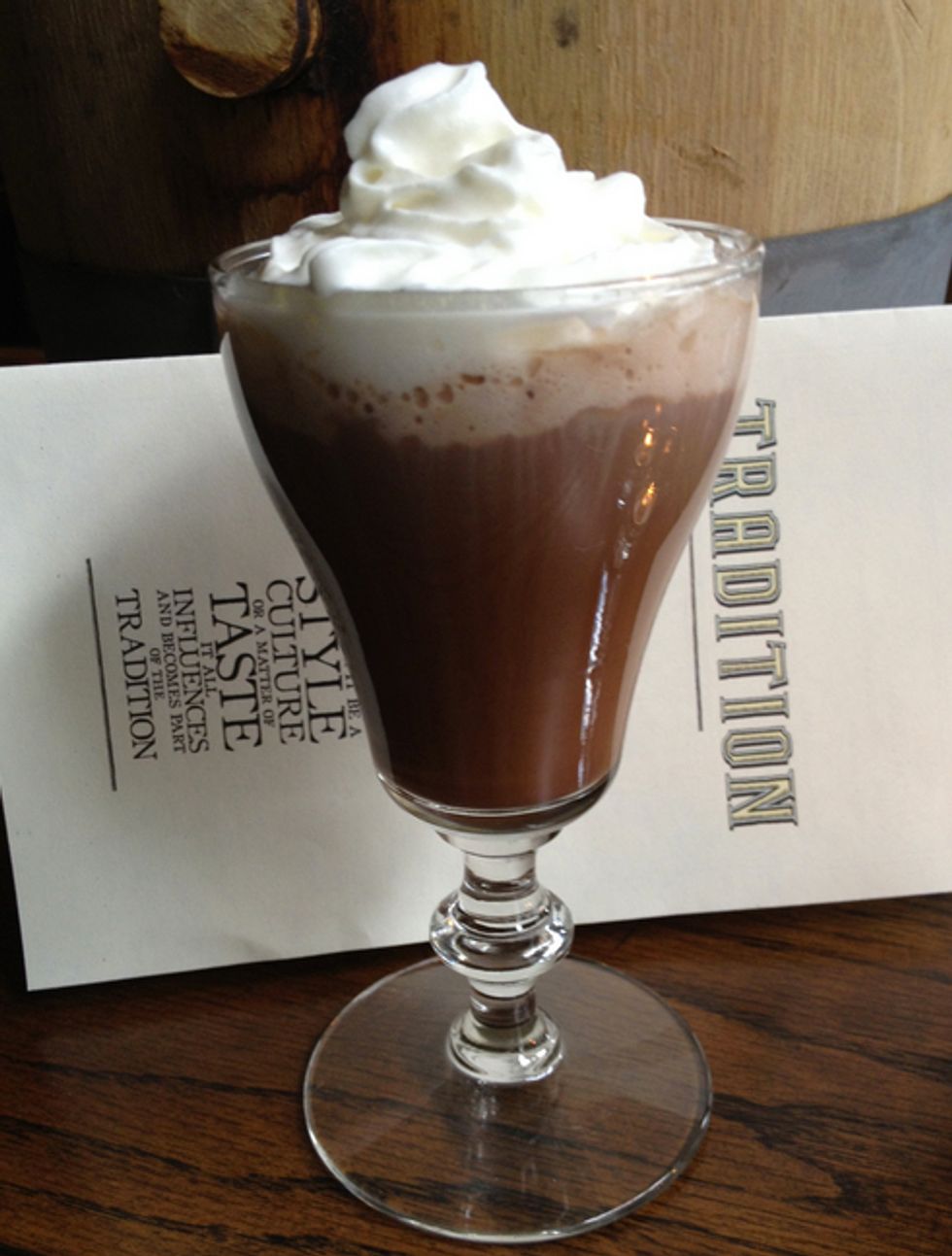 6) At Tradition, bartender Claire Sprouse makes a Borracha Abuelita with Espolon reposado tequila, chili-spiced hot chocolate and Mezcal-infused whipped cream. Yes, that name means "drunk grandma," which translates to a smokey, spicy, chocolately, and boozy libation that looks sweet and innocent on the outside.