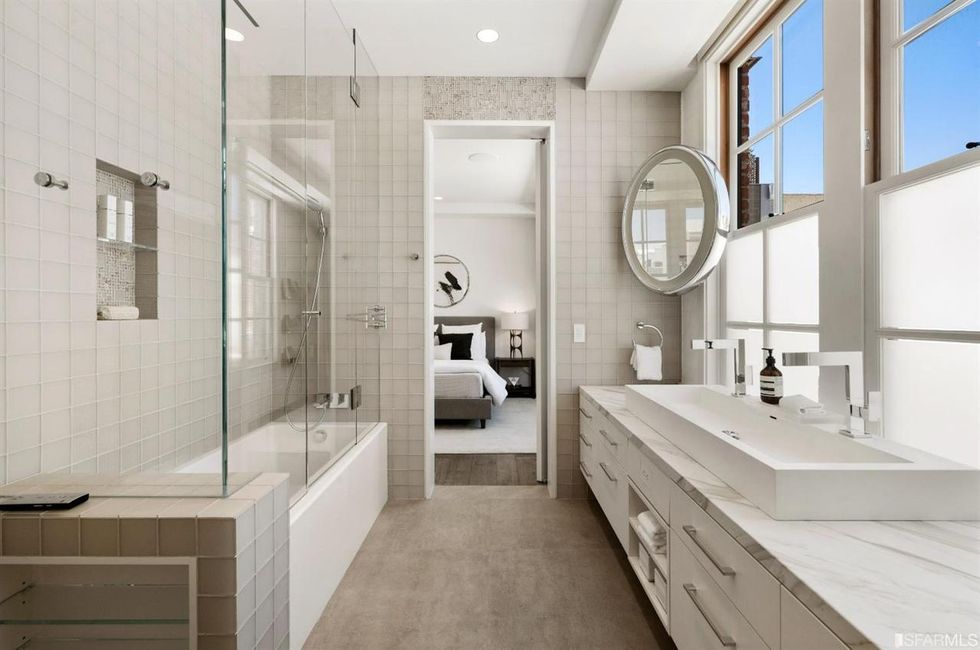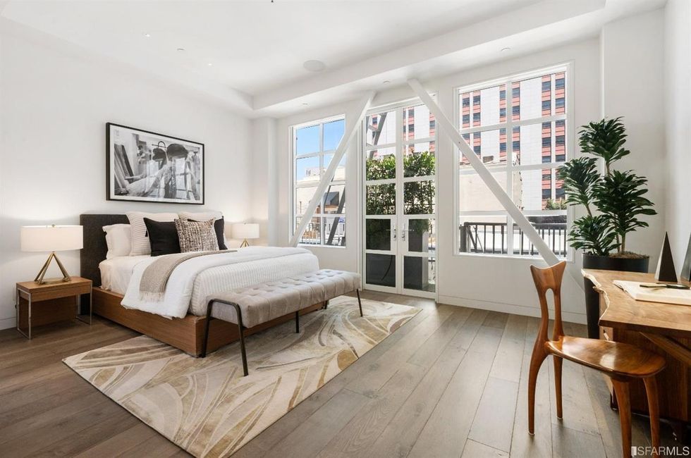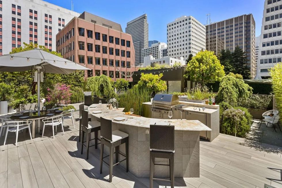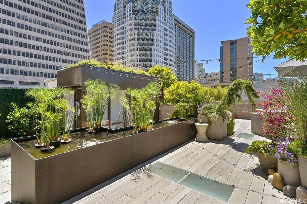 An address in Jackson Square should mean views of such landmarks as the Transamerica Pyramid and Coit Tower; the penthouse delivers. Ascend a glass-encased stairway to the "sky garden," an urban oasis with a small pond, a bocce lawn, designated space for yoga, a hot tub, a full outdoor kitchen, and a lounge with a television.