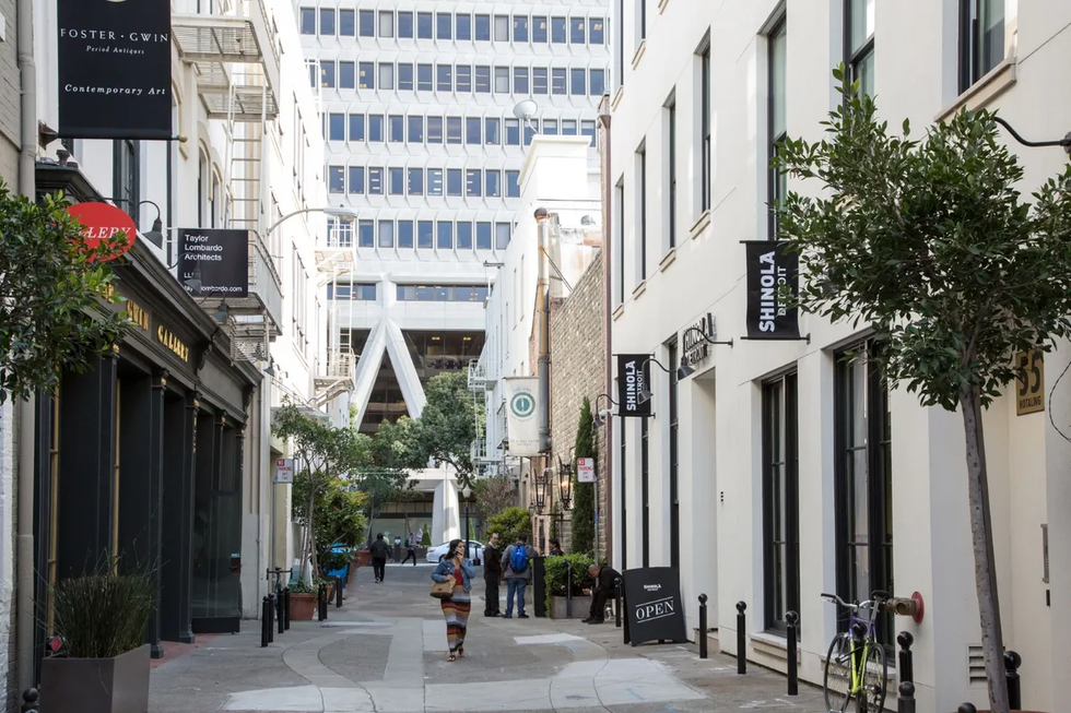 Today San Franciscans know Jackson Square's quaintest alley, Hotaling Place, as the center of the design-centric neighborhood, home to fashion boutiques such as Allbirds and Isabel Marant and surrounded by stylish eateries including Kusakabe and Quince.