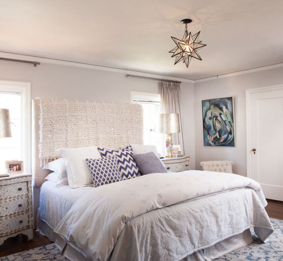 McIntosh loves textiles and has an ever-growing antique quilt collection. Draped over the railing above the entryway is a suzani textile purchased in Turkey. Throughout the home, you'll find textiles draped artfully over headboards in the same manner: "It's a great way to display my collection," McIntosh says.