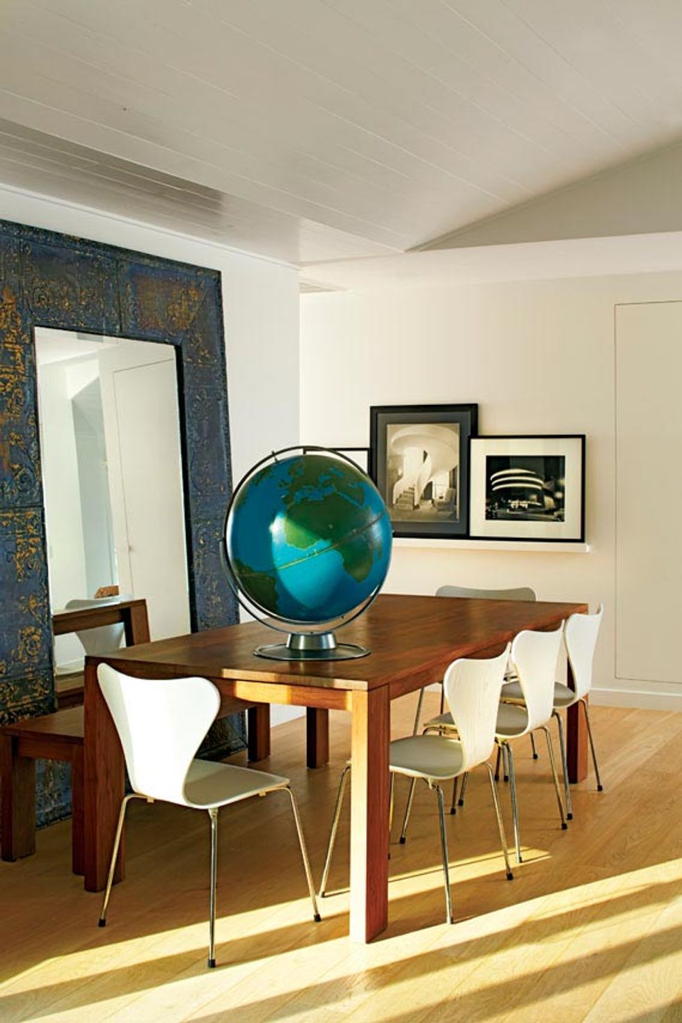 Out in the open are black-and-white photographs depicting architecture (a 1940s image of the Guggenheim Museum) and anatomy (a nude portrait by Herb Ritts)—an edgy counterpoint to the home’s rustic wide-plank oak floors and antlers galore. The picture frames lean against the wall in a casual arrangement that requires no precision instrument. Apparently, what’s good for the goose isn’t always good for the gander. “What can I say?” McNatton laughs. “Mo and I are always learning from each other.”