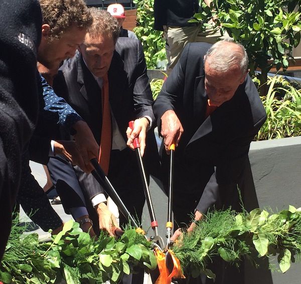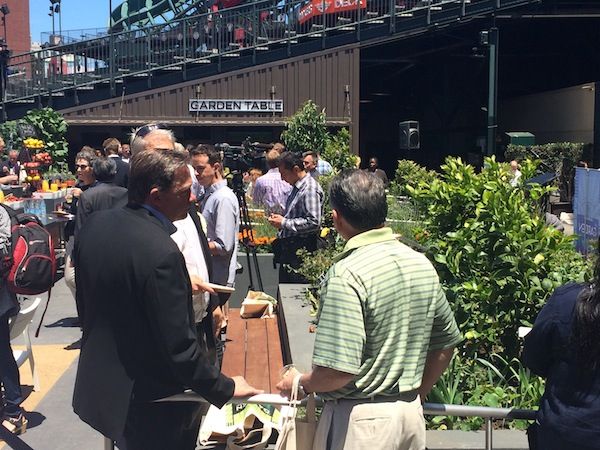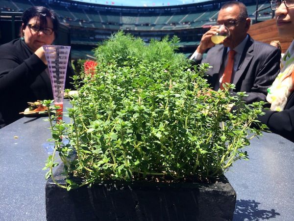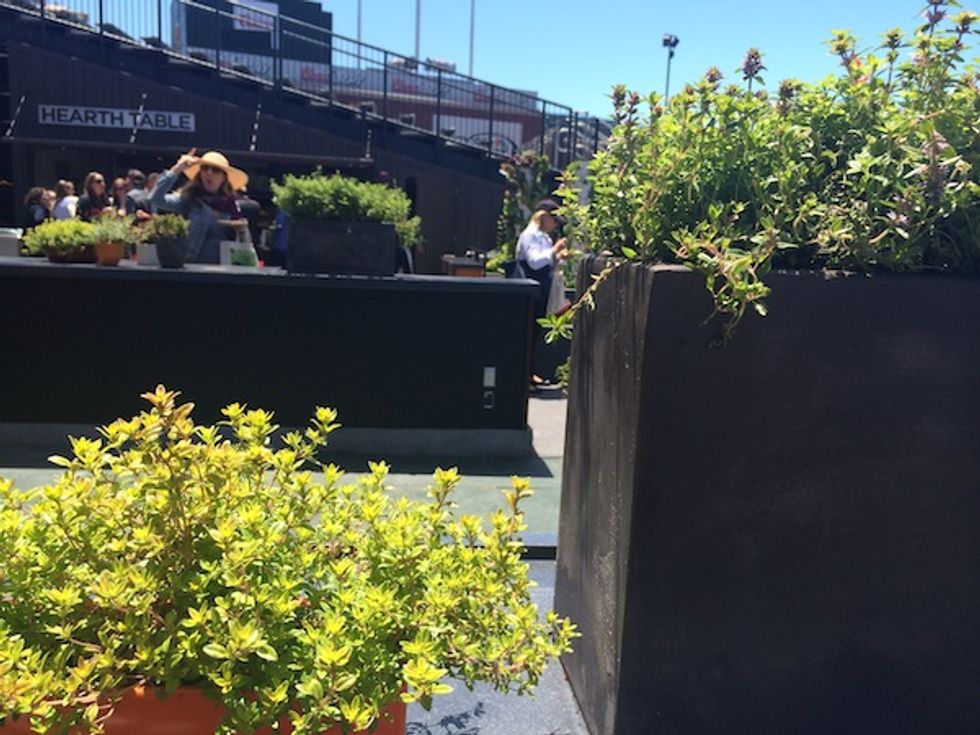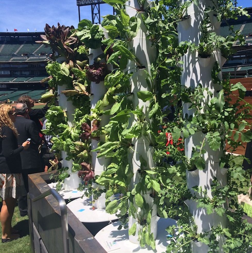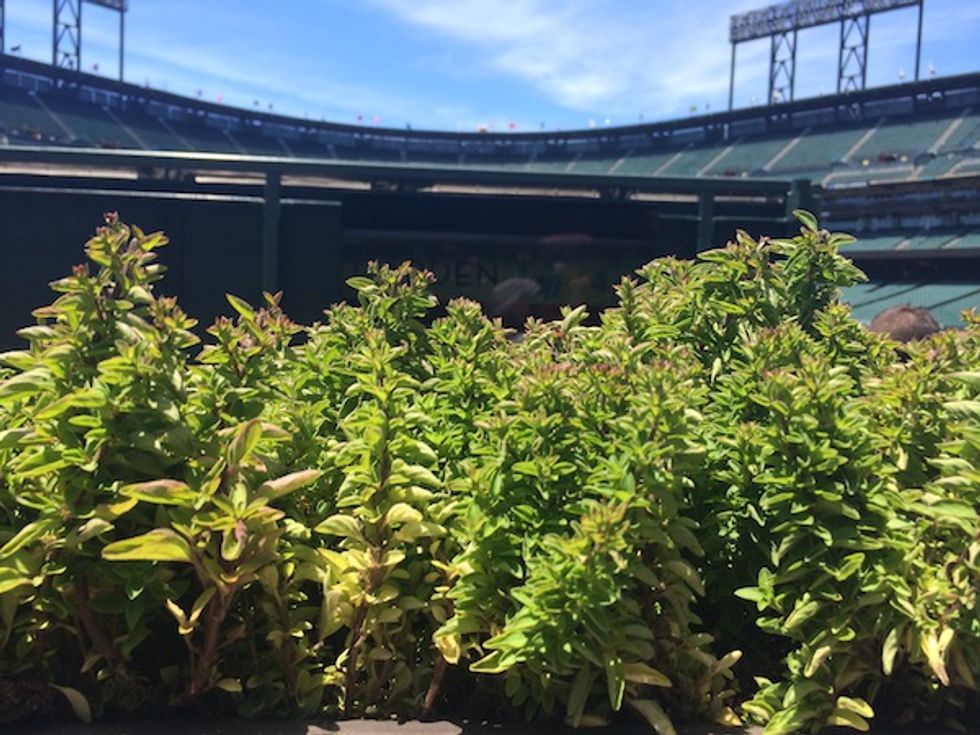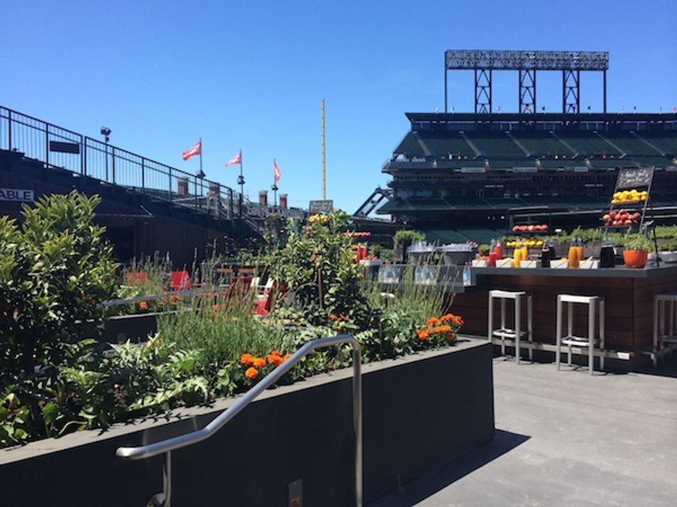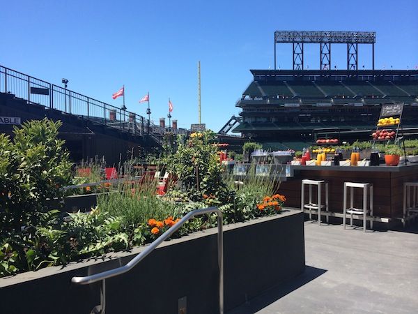 This week, AT&T Park and food service partner, Bon Appétit, opened the Garden at AT&T Park. The abundant and lush garden, just behind the centerfield wall, will supply greens, vegetables, and fruits for Bon Appétit’s ballpark menus. Living towers of kale and chard and planters of lavender and thyme greet you as you enter. A far cry from the peanuts, Cracker Jacks, and piss-poor beer typically found at most U.S. stadiums.