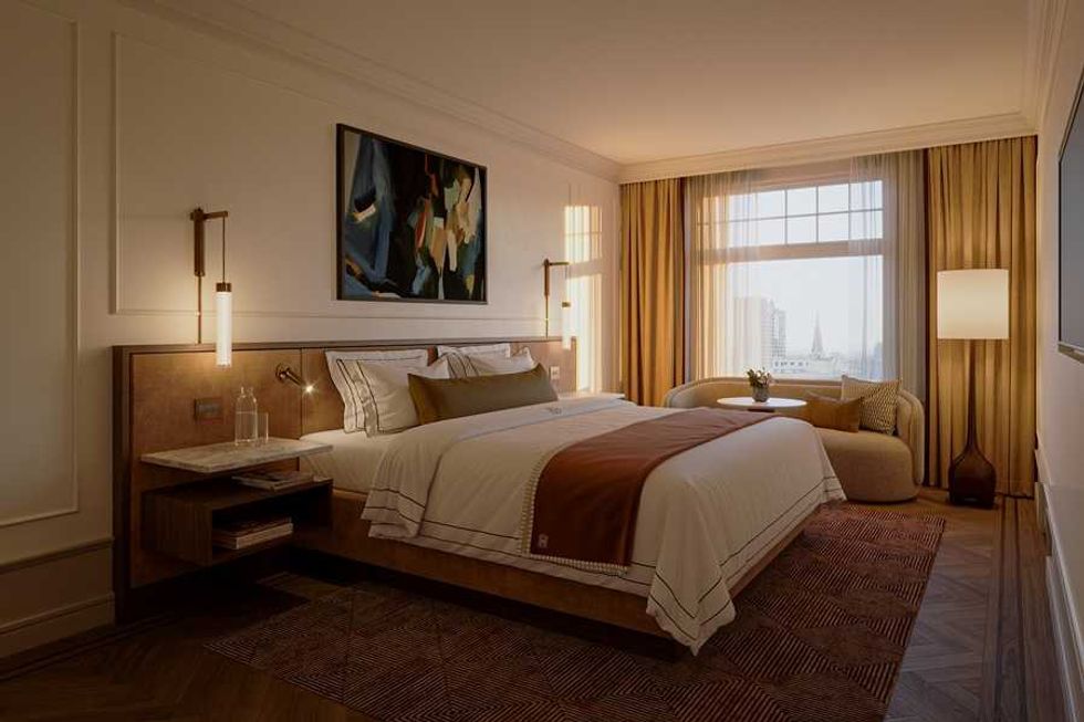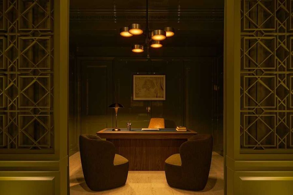 Green is the property’s signature color, and it’s used in various shades on everything from walls to velvet couches, leather seats, and carpeting. The renovation, meanwhile, preserved the building’s original Georgian details like gorgeous plasterwork ceilings, boiserie panels (intricate woodwork that’s affixed to the walls), stained glass accents, and light-filled windows. Mixed with its dark mahogany woods and oversized framed portraits, the effect is equal parts comforting and elegant.