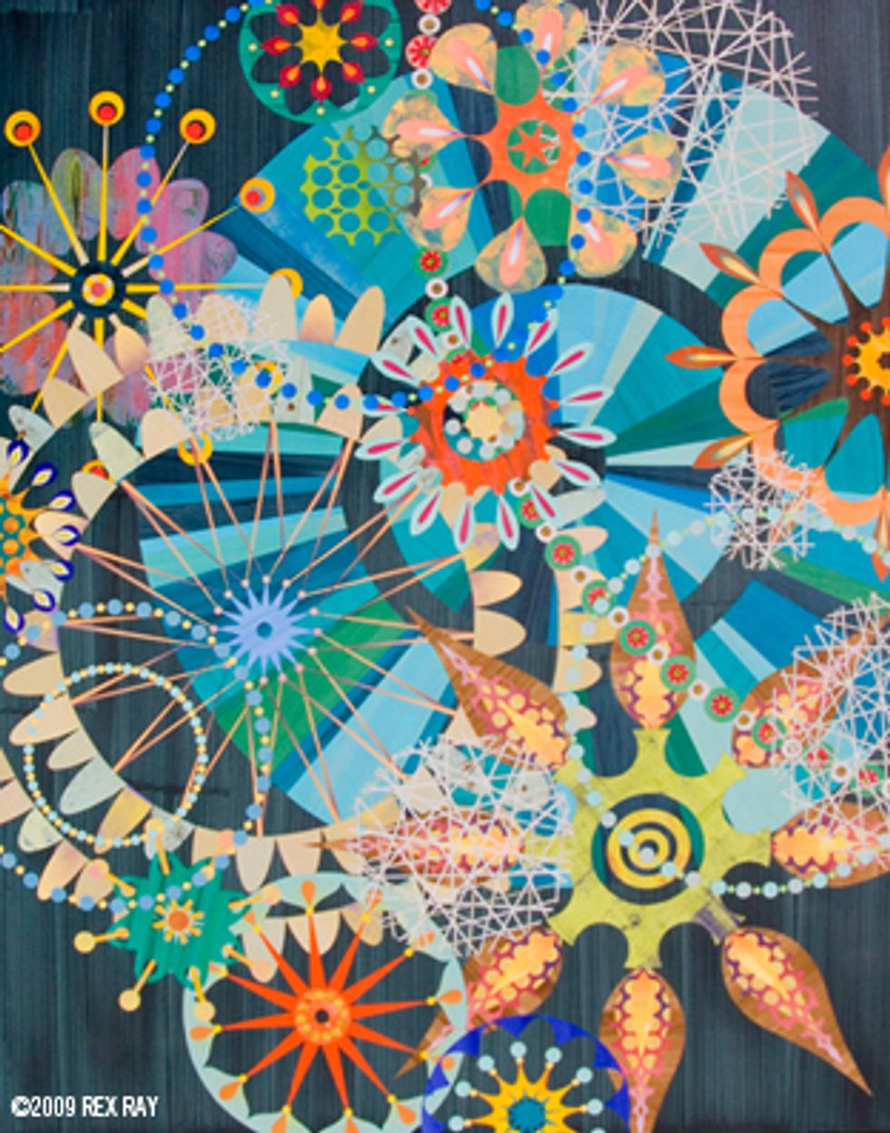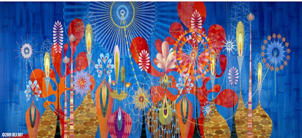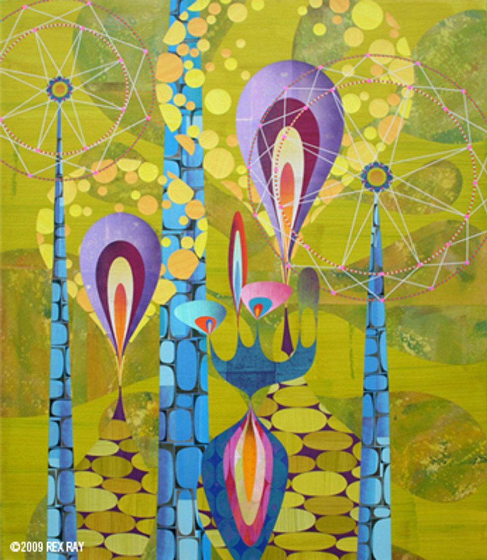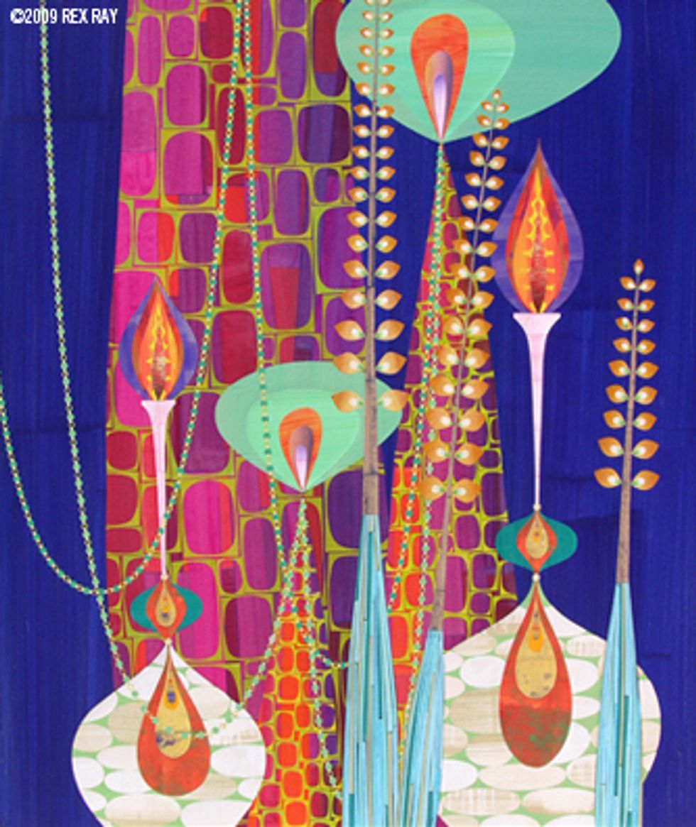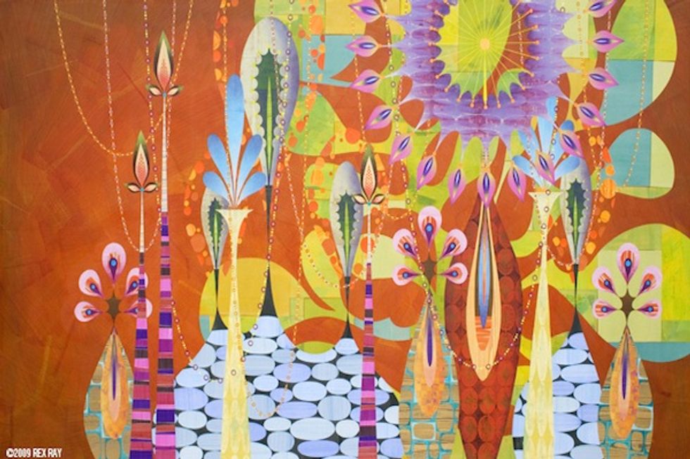 Which means that San Francisco has one less crazy talented, quick witted, super soulful being to call its own. I had the privilege of interviewing Rex several times over the last decade; our conversations happened mostly on the orange Togo sofas at his loft in the old Allied Box Factory. I was always struck by his candor, his ability to tell a great story (like when emails from David Bowie, for whom Rex designed album covers, would get tangled in his spam filter), and his offbeat taste (Futurama wind-up figures co-existed with Warren Platner vintage furniture in his home). Ray's vibrance was most evident in his whimsical, colorful, and utterly mesmerizing collages.