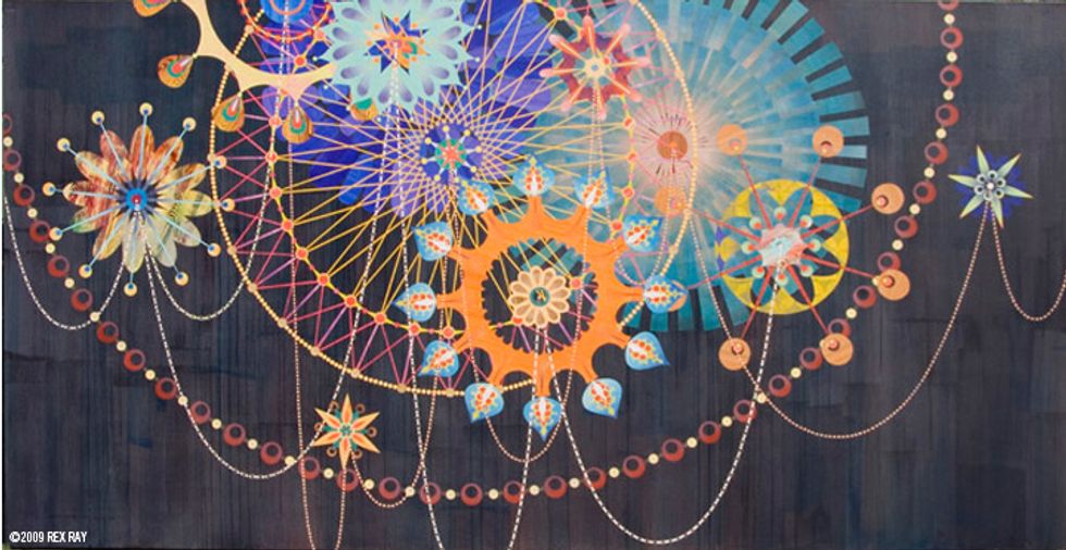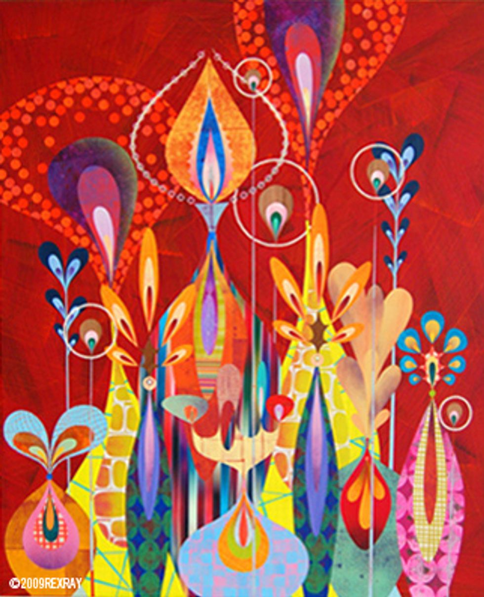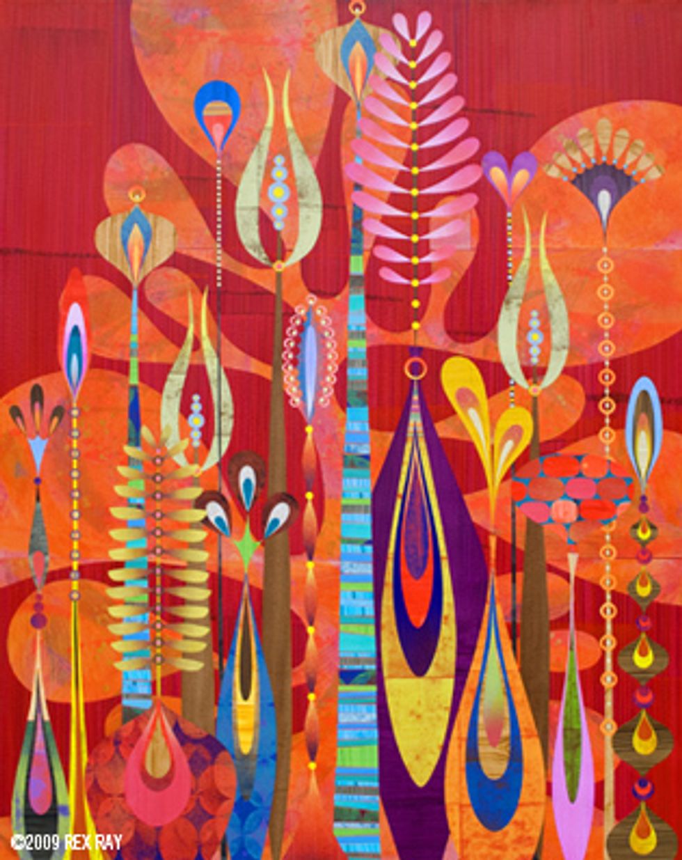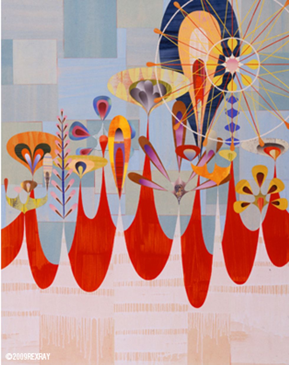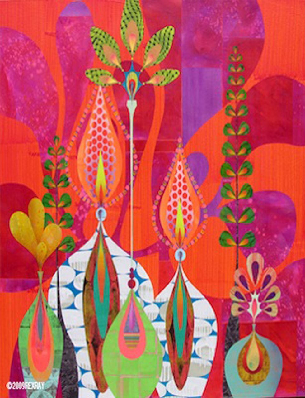 Which means that San Francisco has one less crazy talented, quick witted, super soulful being to call its own. I had the privilege of interviewing Rex several times over the last decade; our conversations happened mostly on the orange Togo sofas at his loft in the old Allied Box Factory. I was always struck by his candor, his ability to tell a great story (like when emails from David Bowie, for whom Rex designed album covers, would get tangled in his spam filter), and his offbeat taste (Futurama wind-up figures co-existed with Warren Platner vintage furniture in his home). Ray's vibrance was most evident in his whimsical, colorful, and utterly mesmerizing collages.