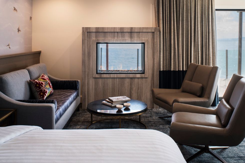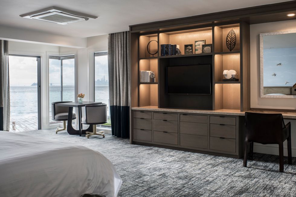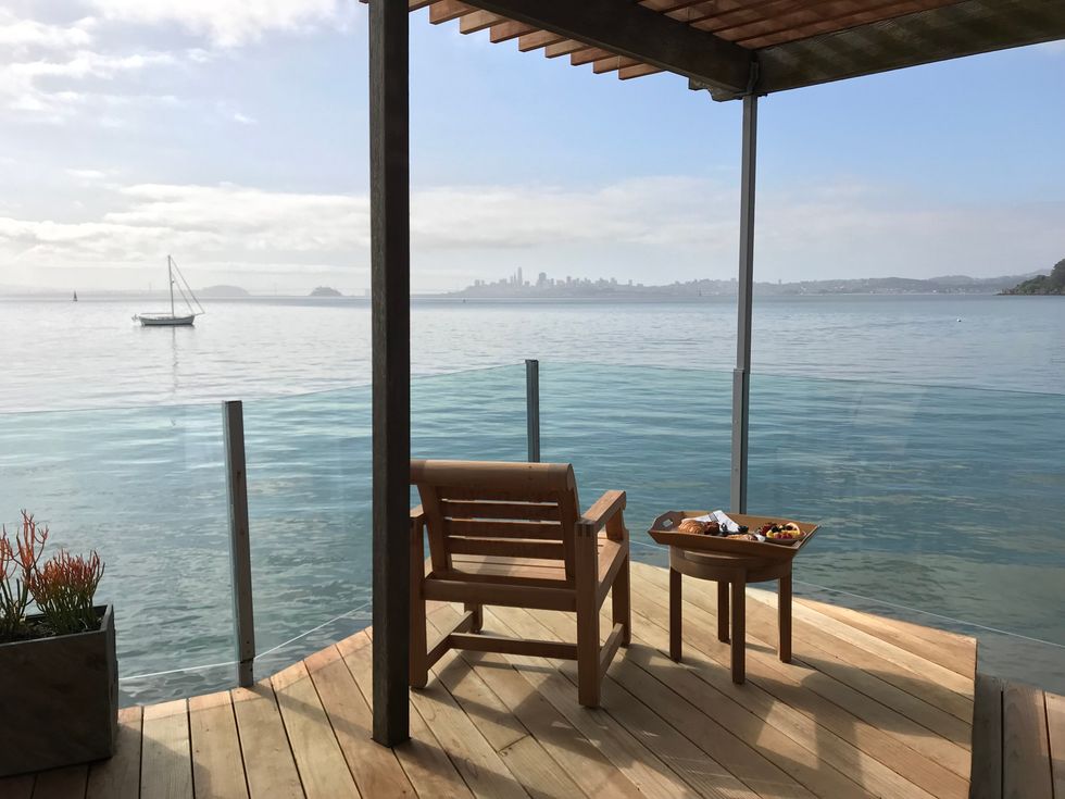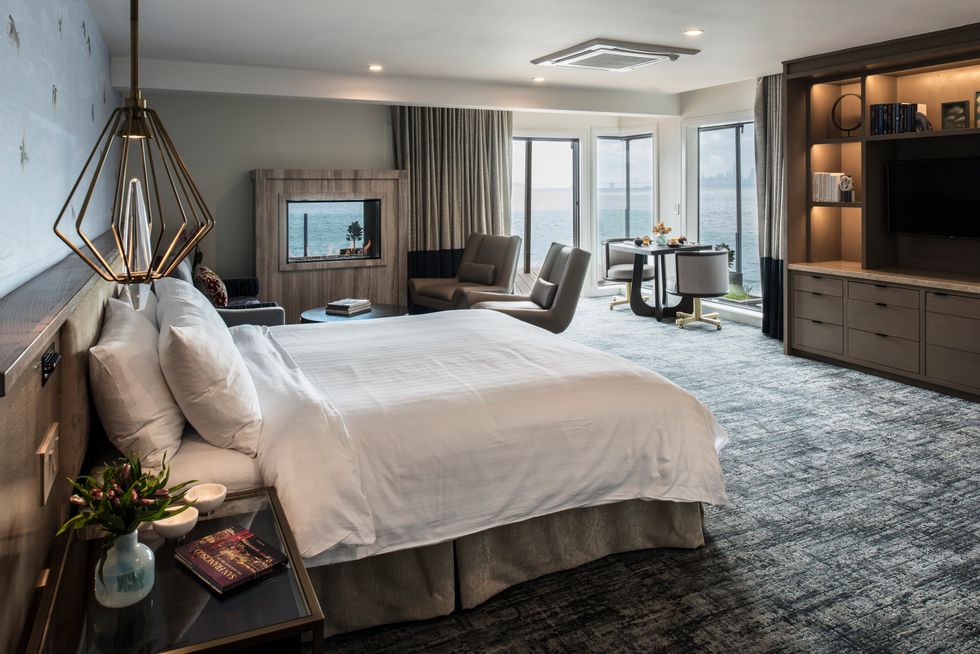As soon as you drive through the iron gates, which have the feel of entering a secret garden, your car will be whisked away by a prompt valet. You'll wander into the foyer, check in with the staff, and pop your head into the quaint drawing room where you may later return for complimentary breakfast, wine, and snacks. If you're staying in a suite, you'll find your room through a private entrance that opens onto tasteful seaside splendor—think grey silk wallpaper, heated tile bathroom floors, rainwater showers, soaking tubs, expansive patios, indoor/outdoor fireplaces, and cozy lounge chairs that swivel so you can choose your favorite among the jaw-dropping views of the city and the Bay.