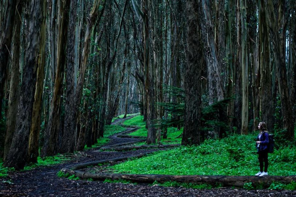 Walk along Andy Goldsworthy's Wood Line, at the Presidio's Lover's Lane.