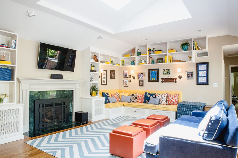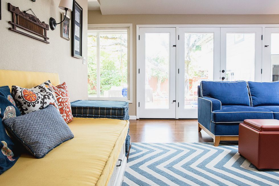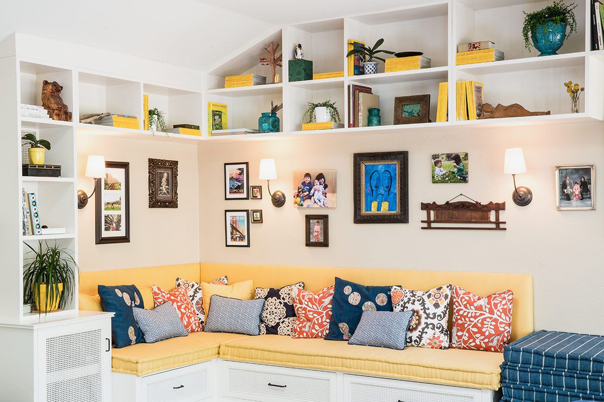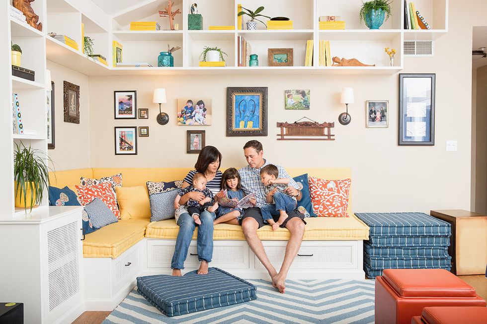 A great family room is so much more than a space with a TV and storage for toys. With furniture collected from years of traveling, their first home purchase, and three bilingual children under the age of seven, Stephen and Ritsuko Morse put their living room in the hands of Homepolish designer Libra Kaplan, who transformed it from hodgepodge to happily organized. The result is a fresh space true to its Mill Valley locale, with lots of storage for easy clean-up, kid-proof wall lamps, and seating and rugs designed for ultimate durability.