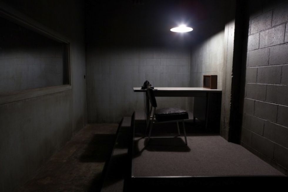 Gaw, who also created the look and feel of the Armory Club, Kink’s elegant new clothes-on watering hole across the street, says that there’s more than meets the eye when it comes to setting the stage for sexual excitement. “We have to bring the directors' concepts to life, while keeping safety, function and hygiene in mind,” he says. “Obviously, we avoid fabrics—but when we do use them, microfibers are best. We prefer to use vinyl, leather or tiled surfaces that can easily be cleaned and disinfected. When we make a table, we make it 29.5 inches high, as it’s the ideal height for lifting someone onto it.” The Interrogation Room set shows how effectively the team can create a mood, as well as a 29.5-inch-high tabletop.