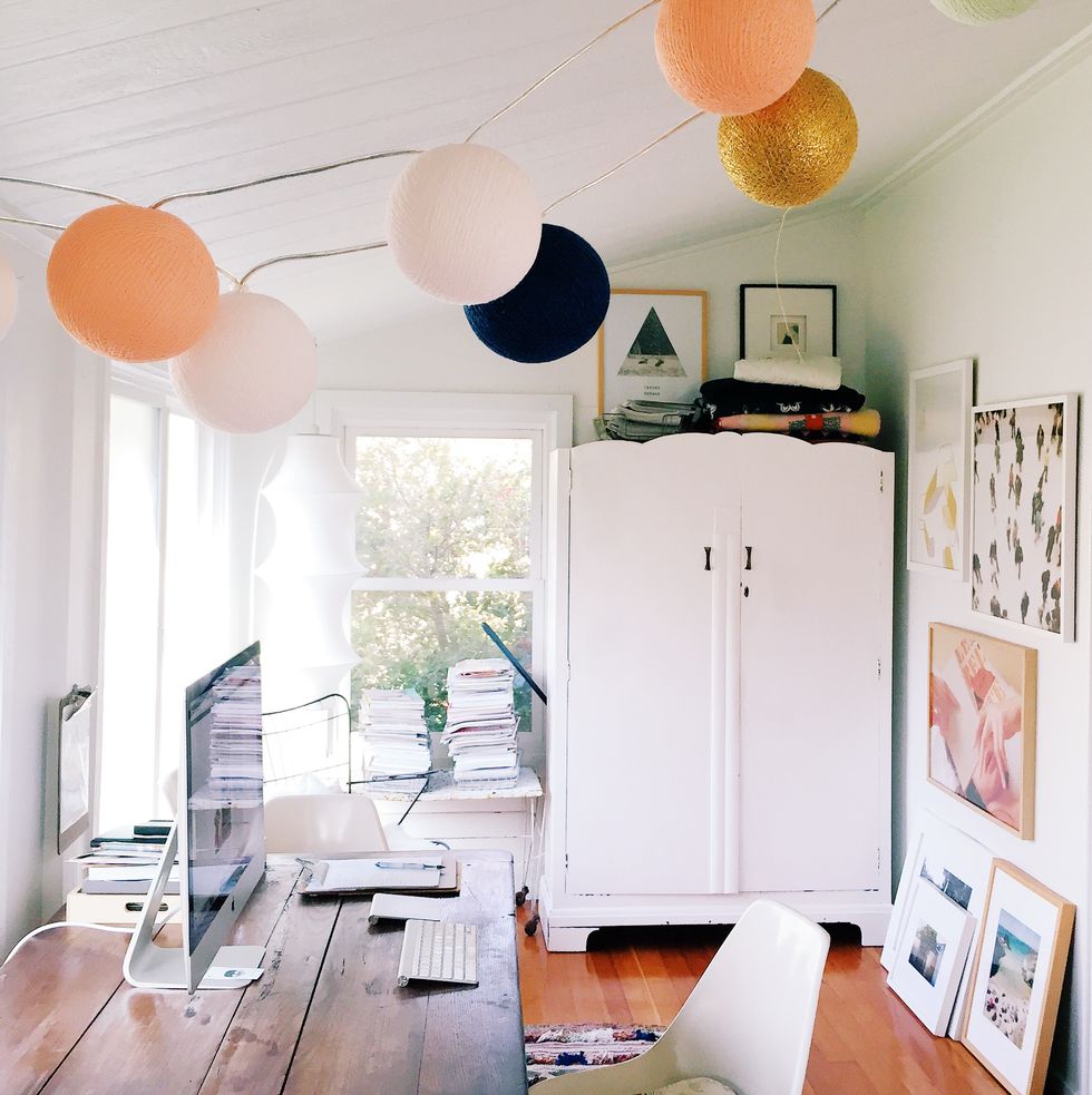 Behind her desk is an array of inspiration including framed Instagram photos from a trip to LA