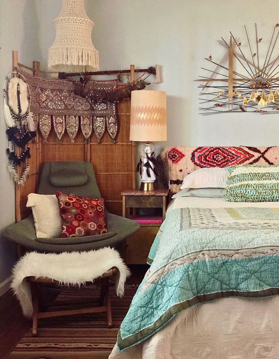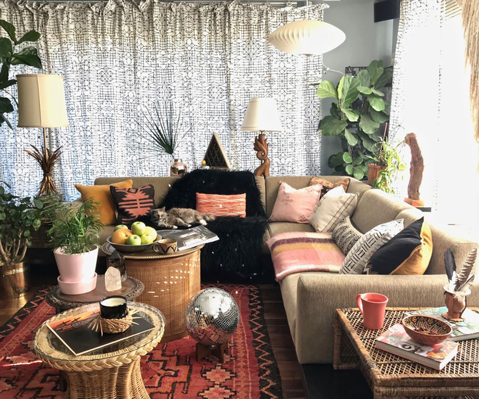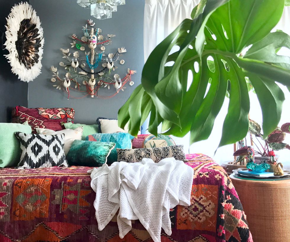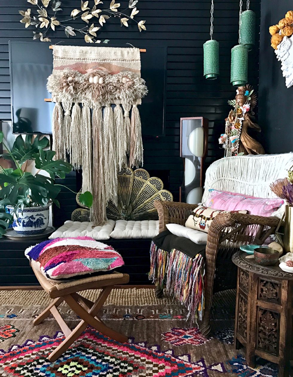 To say Peters is a maximalist would be putting it mildly, and her penchant for heavy textures, bold patterns, and plants galore align her look with that of Berkeley-born, uber-bohemian, Jungalow blogger Justina Blakeney. And while Peters admits that the flower child designer is one of her biggest inspirations, her style holds its own with a mix of modern and antique items from near and afar.