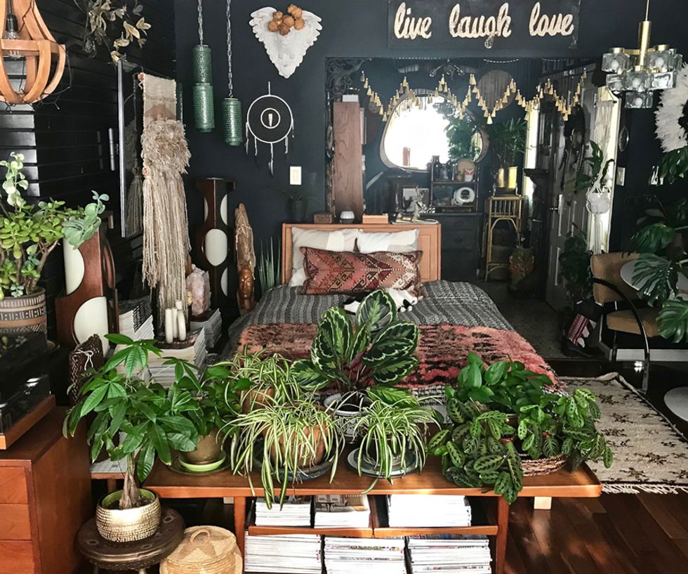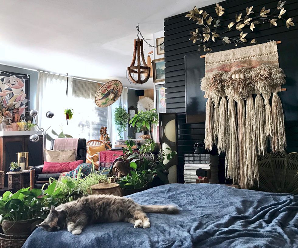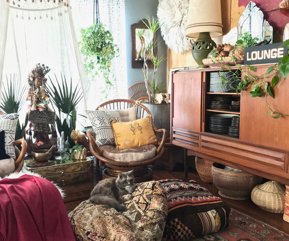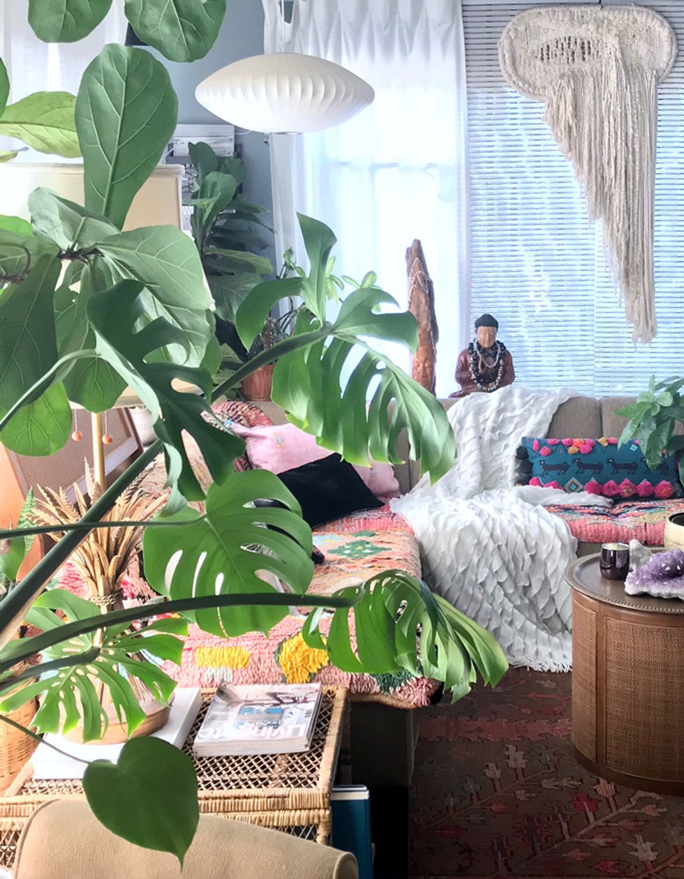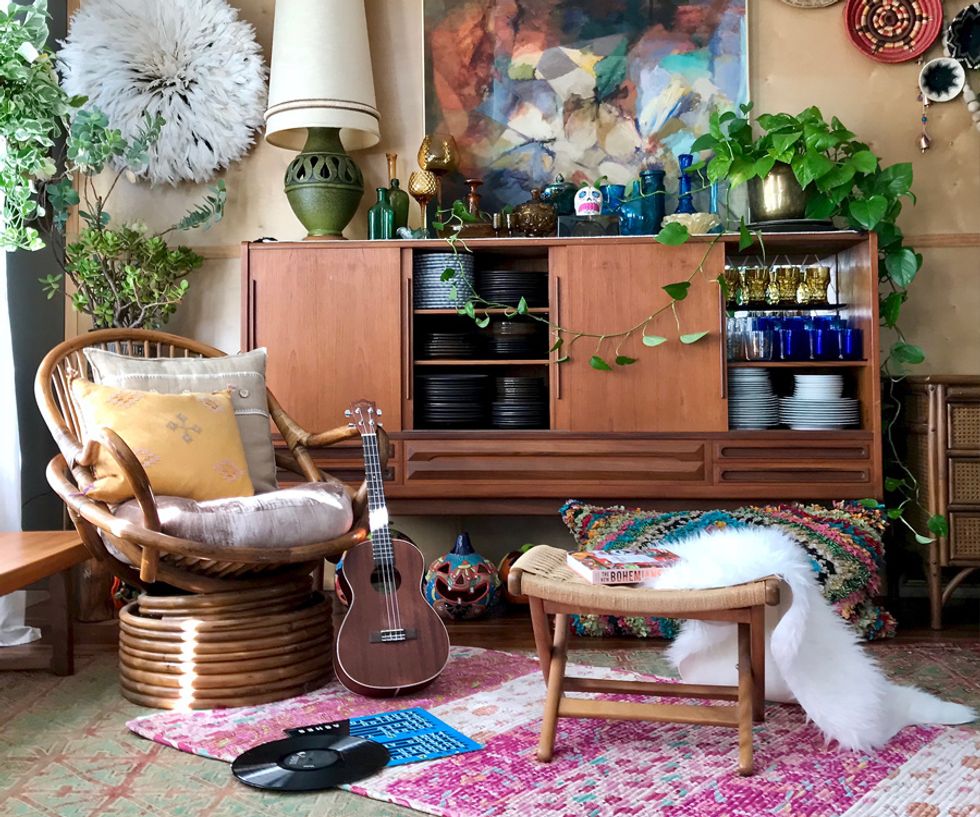 To say Peters is a maximalist would be putting it mildly, and her penchant for heavy textures, bold patterns, and plants galore align her look with that of Berkeley-born, uber-bohemian, Jungalow blogger Justina Blakeney. And while Peters admits that the flower child designer is one of her biggest inspirations, her style holds its own with a mix of modern and antique items from near and afar.