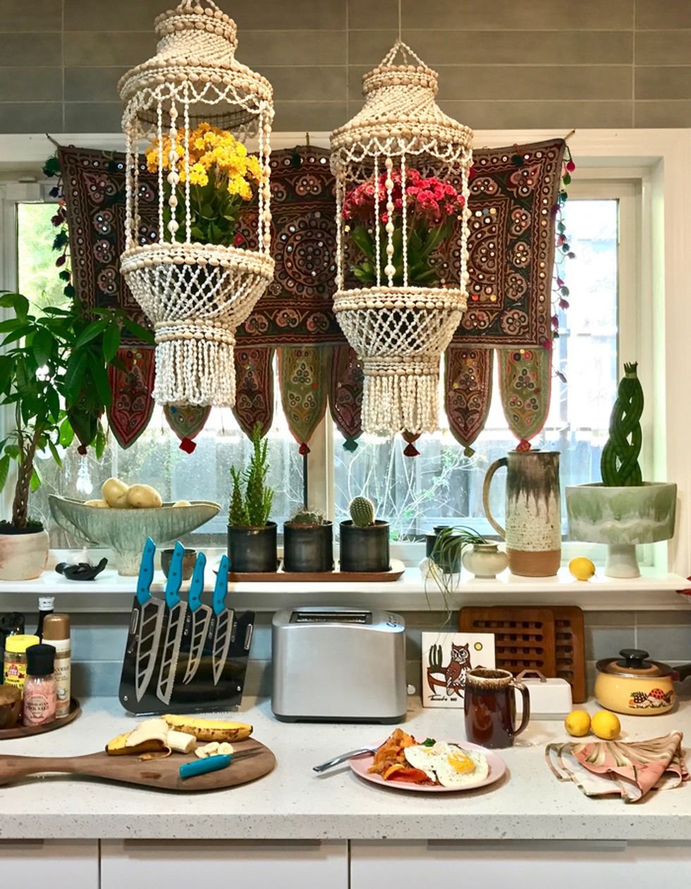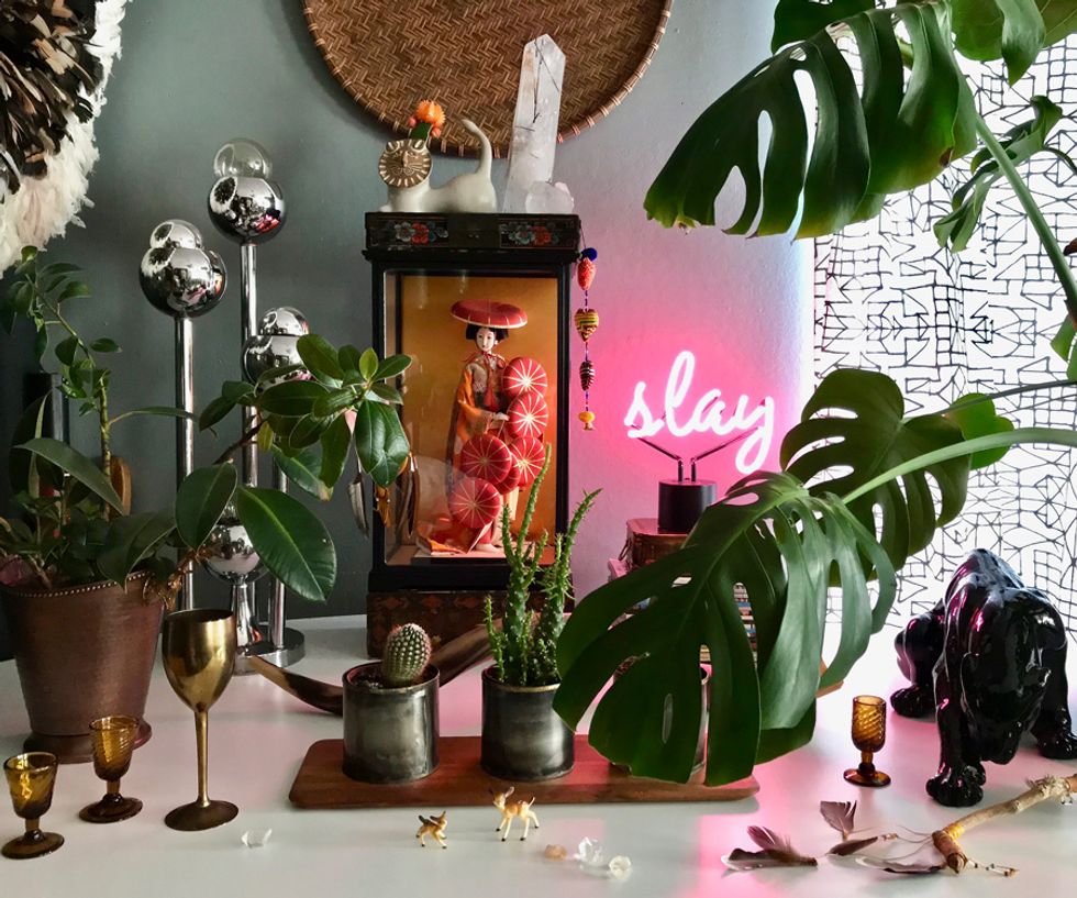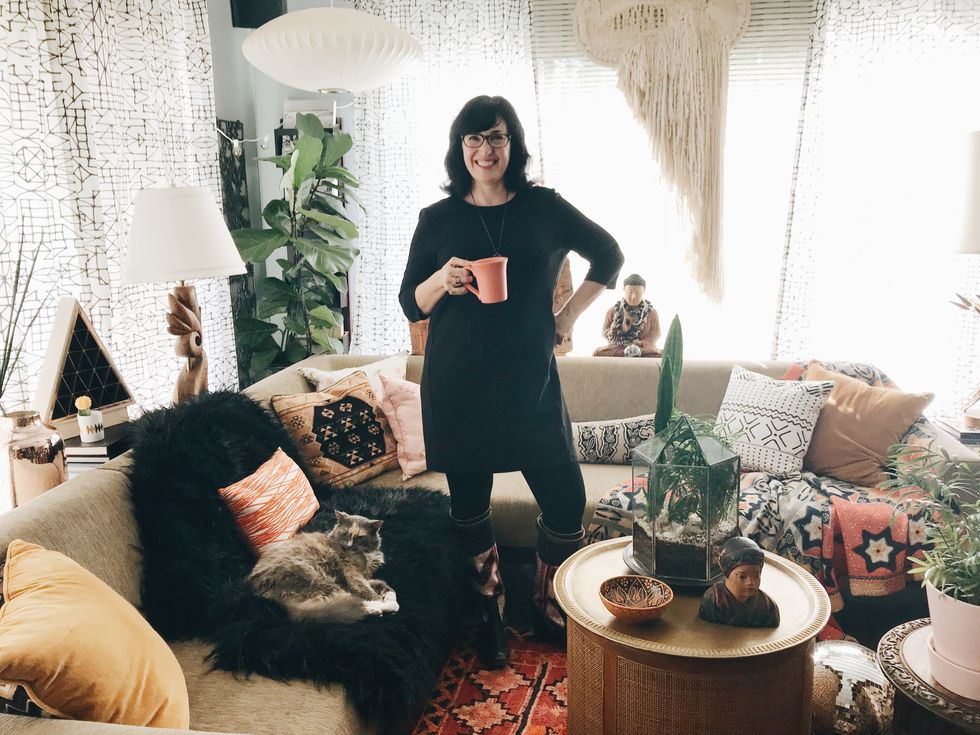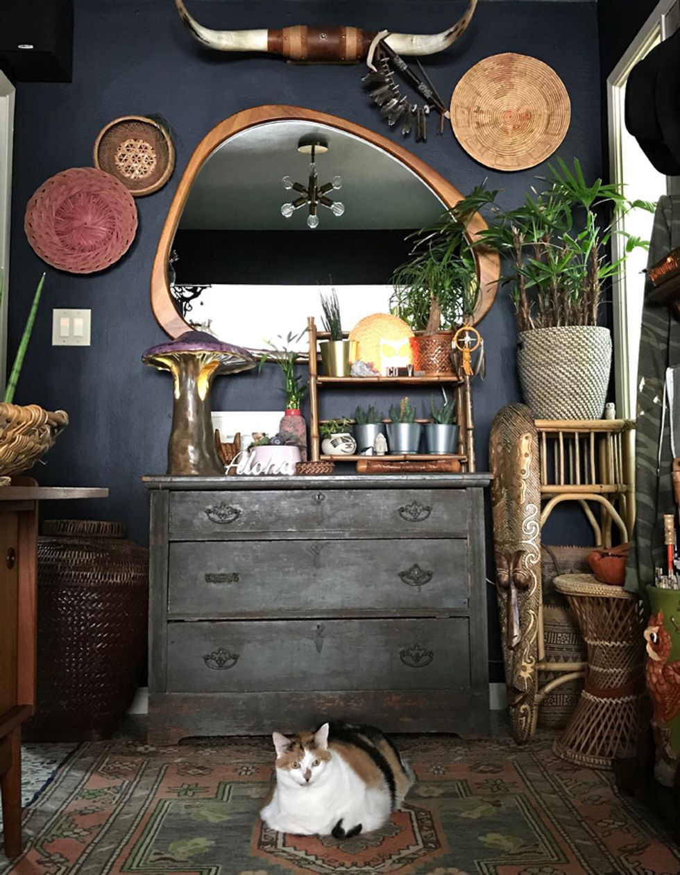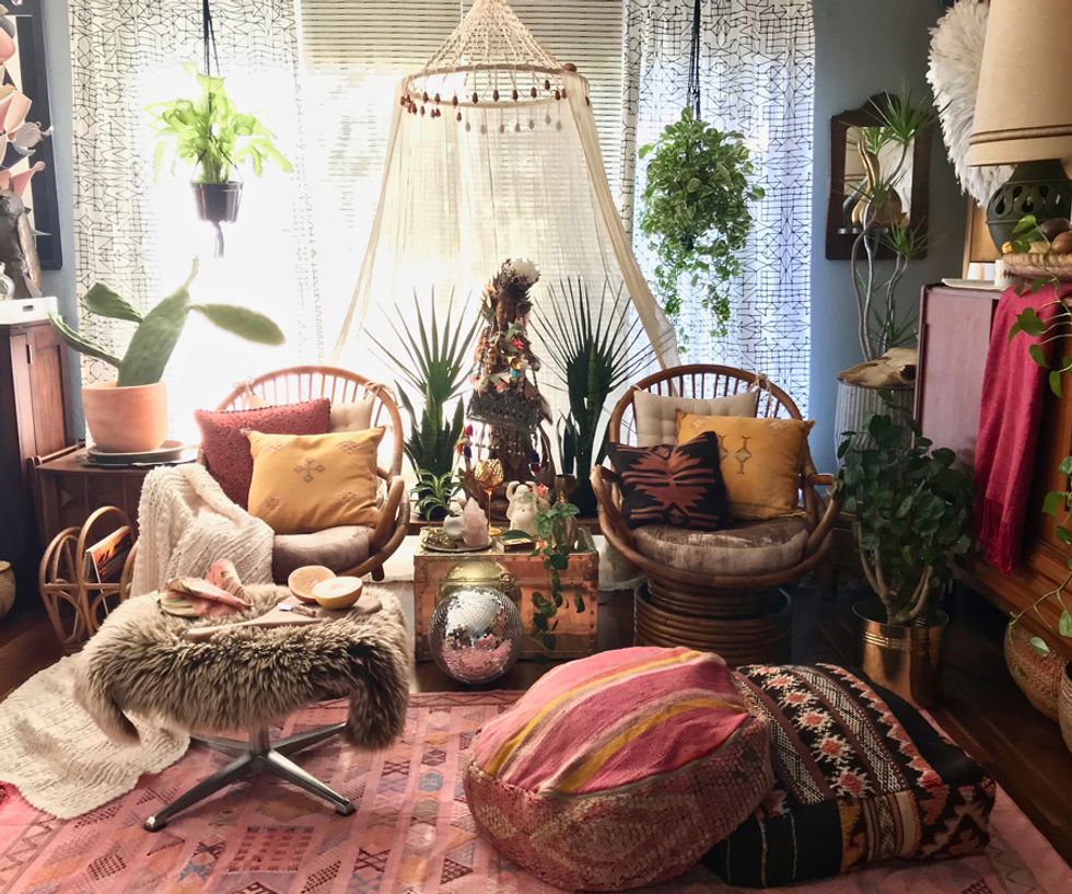 To say Peters is a maximalist would be putting it mildly, and her penchant for heavy textures, bold patterns, and plants galore align her look with that of Berkeley-born, uber-bohemian, Jungalow blogger Justina Blakeney. And while Peters admits that the flower child designer is one of her biggest inspirations, her style holds its own with a mix of modern and antique items from near and afar.