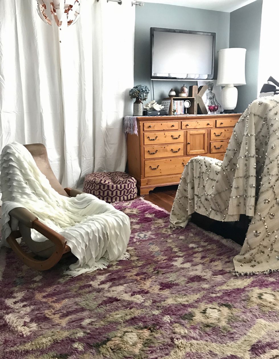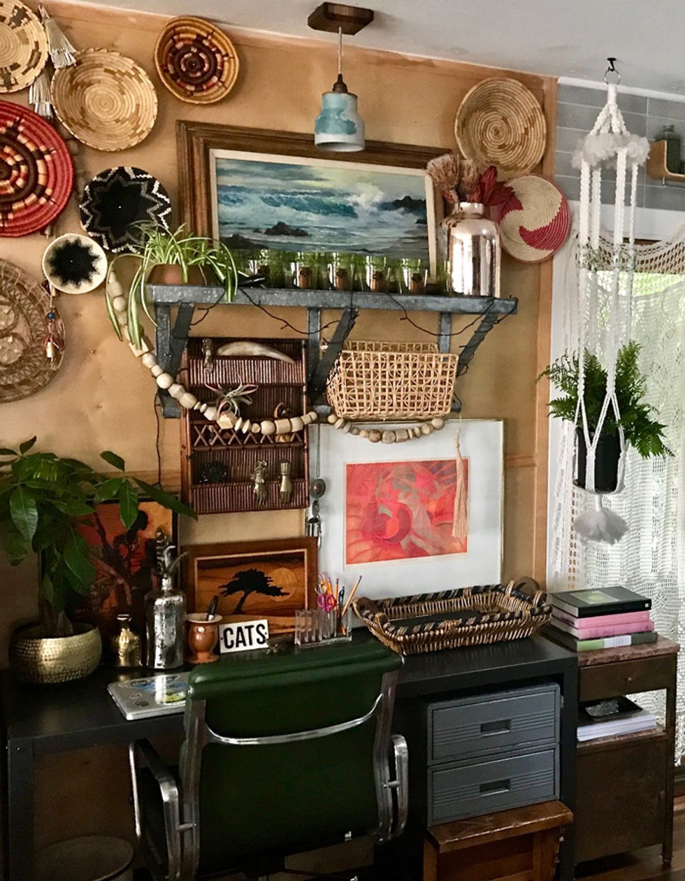 As a big fan of vintage ("I love anything old with soul"), she's been known to spend the weekend scouring thrift shops for a great deal, but will also splurge on a statement piece or works by a local artists. Some of her favorite places to shop include Alameda Point Antiques Faire, Gypsy Road Studio and Piedmont Lane Gallery. Instagram is also a go-to resource for finding makers such as Jennifer Harrison, whose Flea Market Fab is her fav for poufs and rugs.