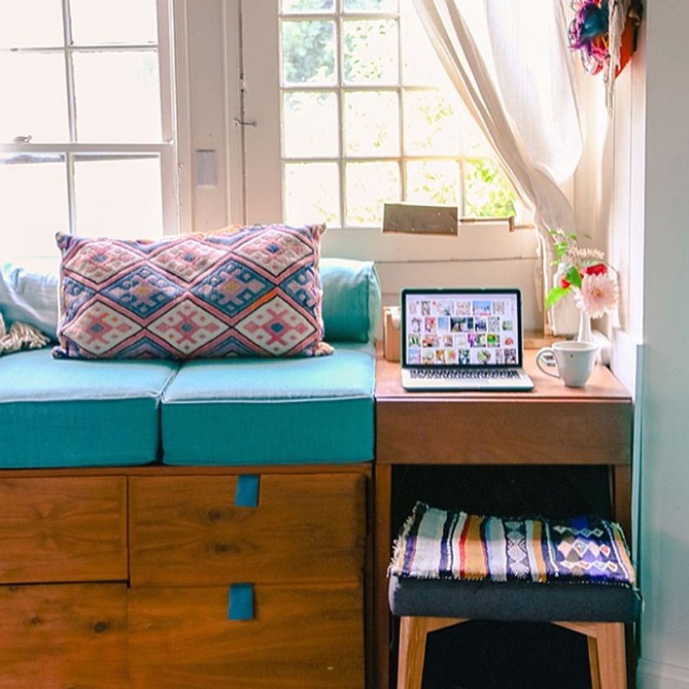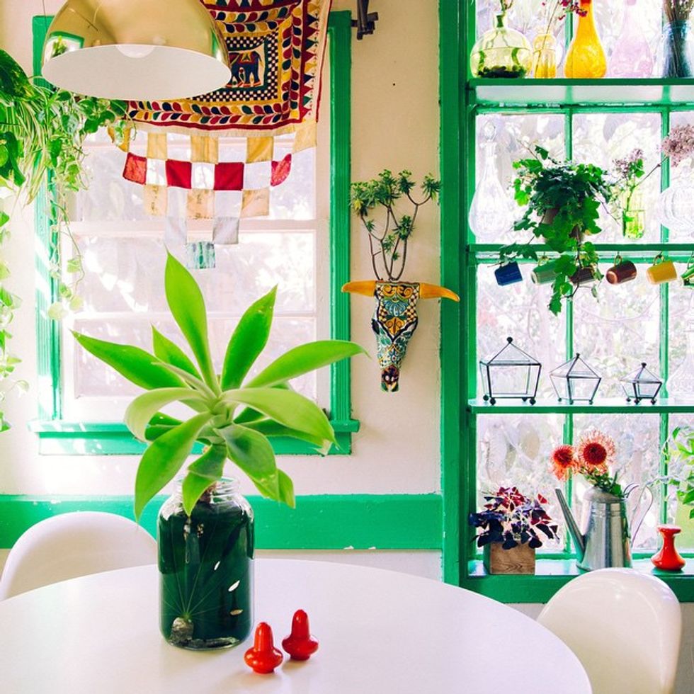 Blakeney's obsession with colors, plants, travel mementos, and repurposing old and used finds, gives her home (and blog) the sense of walking through an open air bazaar, basking in a Caribbean getaway, or glamping in dazzling Mongolian yurts.
