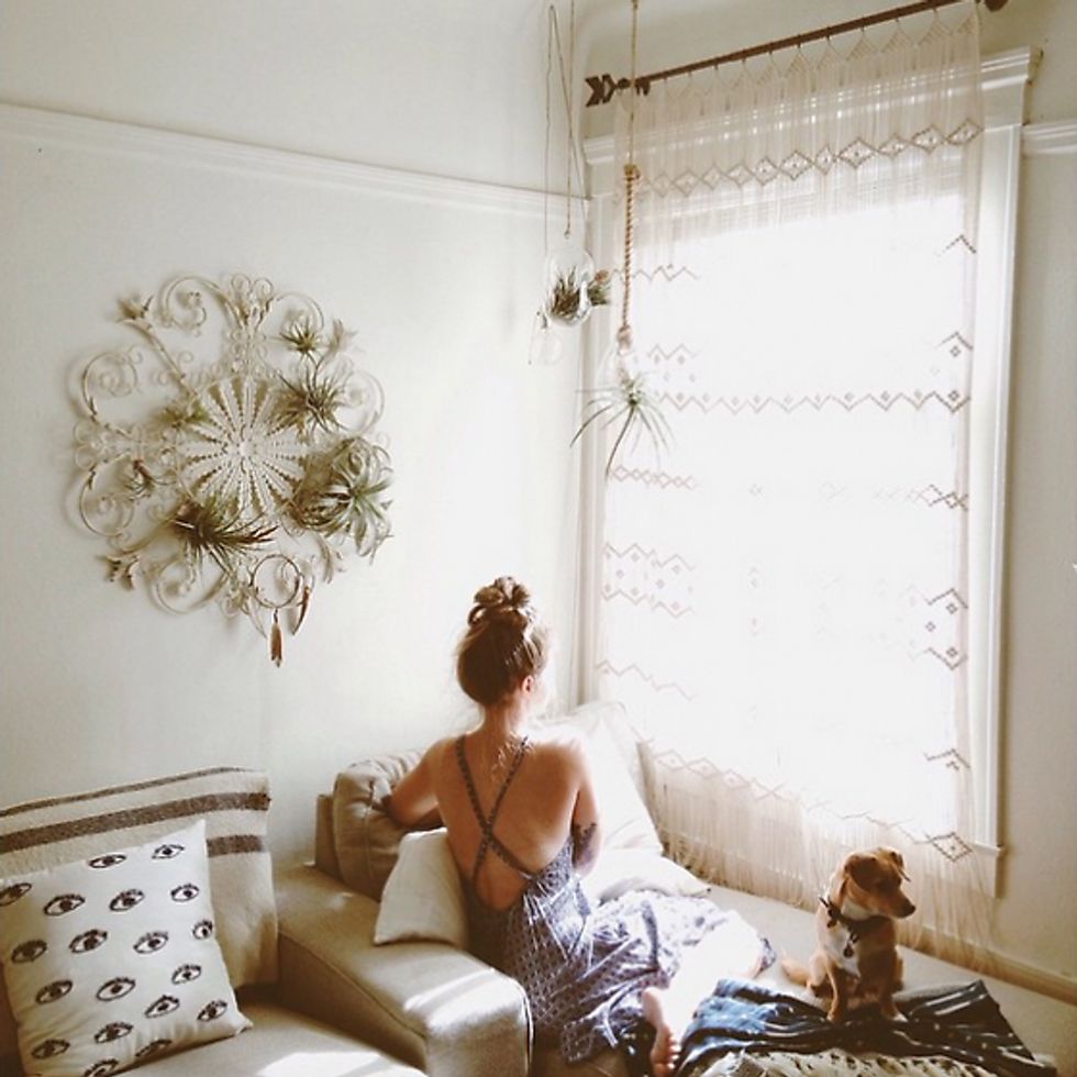 A look at the cozy space of lumber queen Aleksandra Zee, who wields wood into the highly covetable geometric triangles and rectangular panels seen at Monk's Kettle, Intermix, and other creative spaces around the city. The woodworker emphasizes, however, that her living space—shared with musician boyfriend Antrom Kury of SF band Eyes on the Shore and their dog Jack—rather than her workspace, is where her inspiration lies.