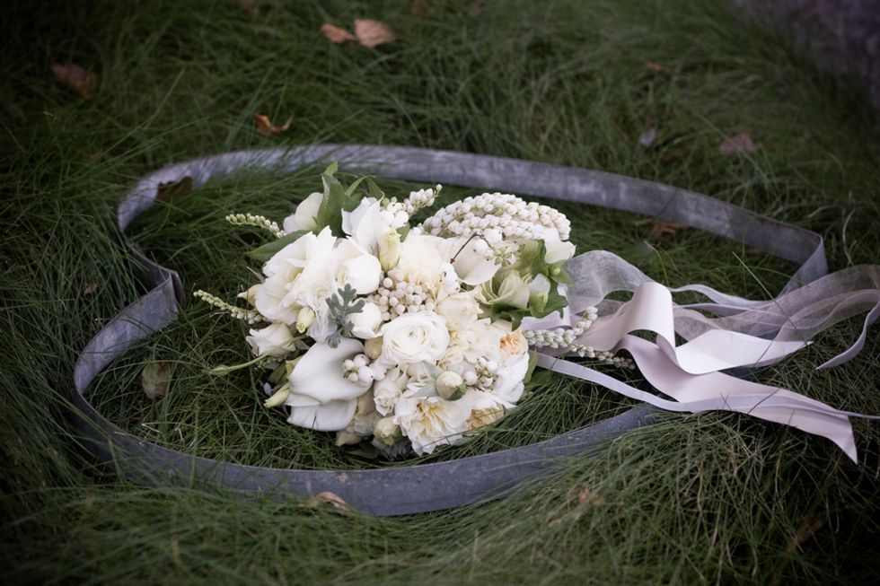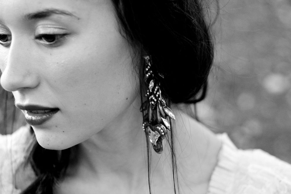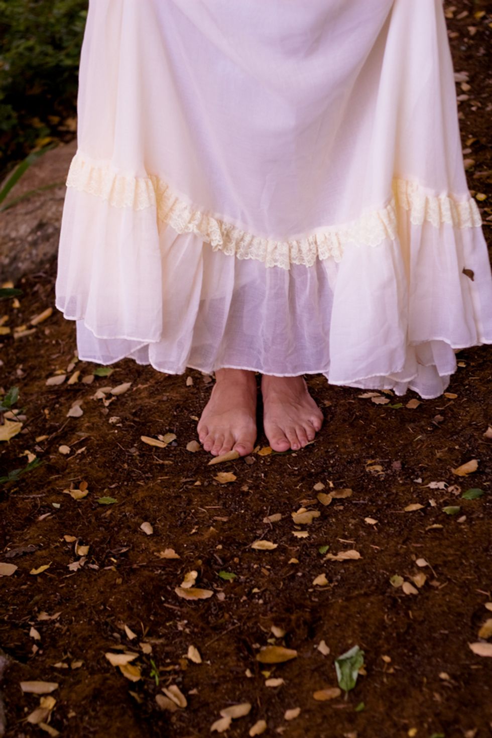 To see both dresses (one a Emma Domb 60's frothy confection with ruched bodice and lavender sash; the other a 50's tulle skirted frock with sweetheart satin bodice) sitting atop the billowy grass was breathtaking! Next, we put Bre in the amazing Gunne Sax 70's boho maxi dress with corset bodice. Watching her walk barefoot in the backlit fern grotto...dreamy. Valley Flora provided the romantic florals for the shoot. Their creativity and craftsmanship make the flowers shine!