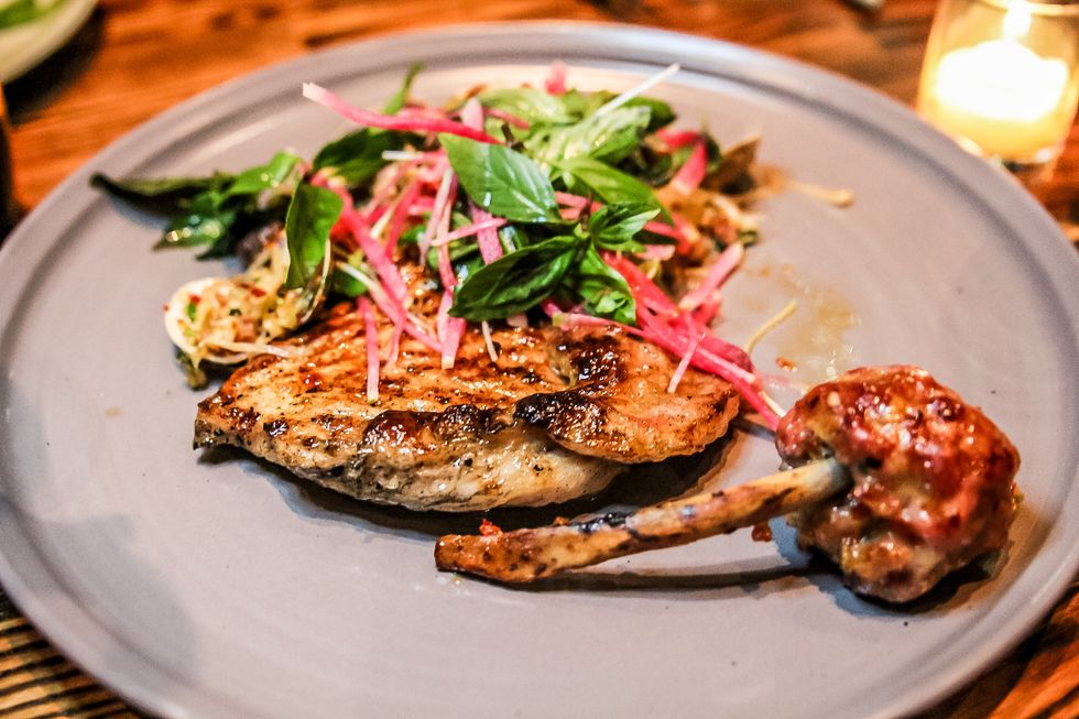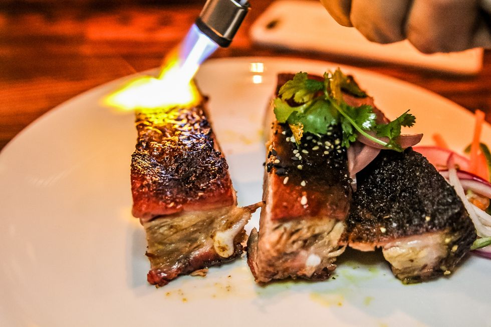 Things are heating up south of Market Street with the much anticipated arrival of International Smoke from celebrity chef Michael Mina and Bay Area girl boss, Ayesha Curry. Curry has slowly been building a culinary empire hosting two TV cooking shows, authoring her own cook book, launching a meal kit company, and now finally creating her own restaurant (not to mention finding time to be the wife of Steph Curry and mom to two adorable children—what can't she do?). For those unfamiliar with the journey of International Smoke, it began as one of the rotating pop-up concepts for Michael Mina's restaurant, The MINA Test Kitchen, which regularly partners with chefs to showcase different menus. Recognizing they had something special on their hands, Curry and Mina collaborated to launch a full-scale restaurant, flipping the now defunct RN74 into a trendy, hip spot embellished with copper columns, moody lighting, and graffiti in various languages etched into the wall. Naturally, the food here really steals the show—a collection of cuisine from around the world with a range of spice, flavor, and, of course, smokiness.