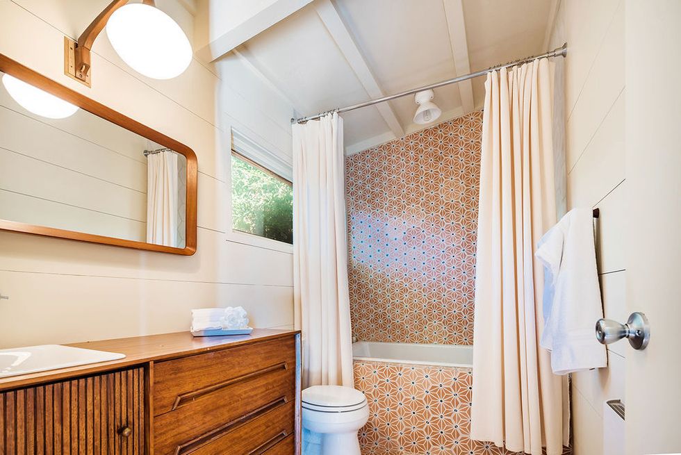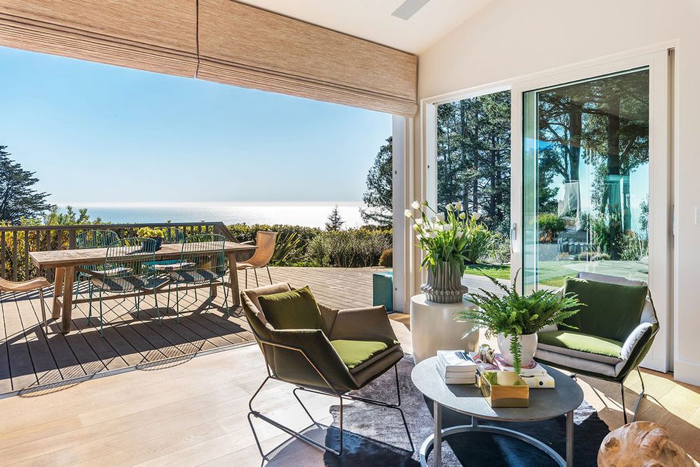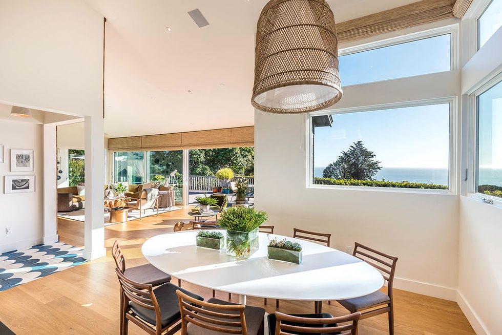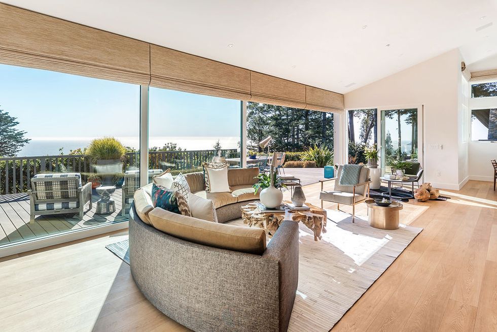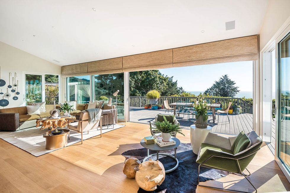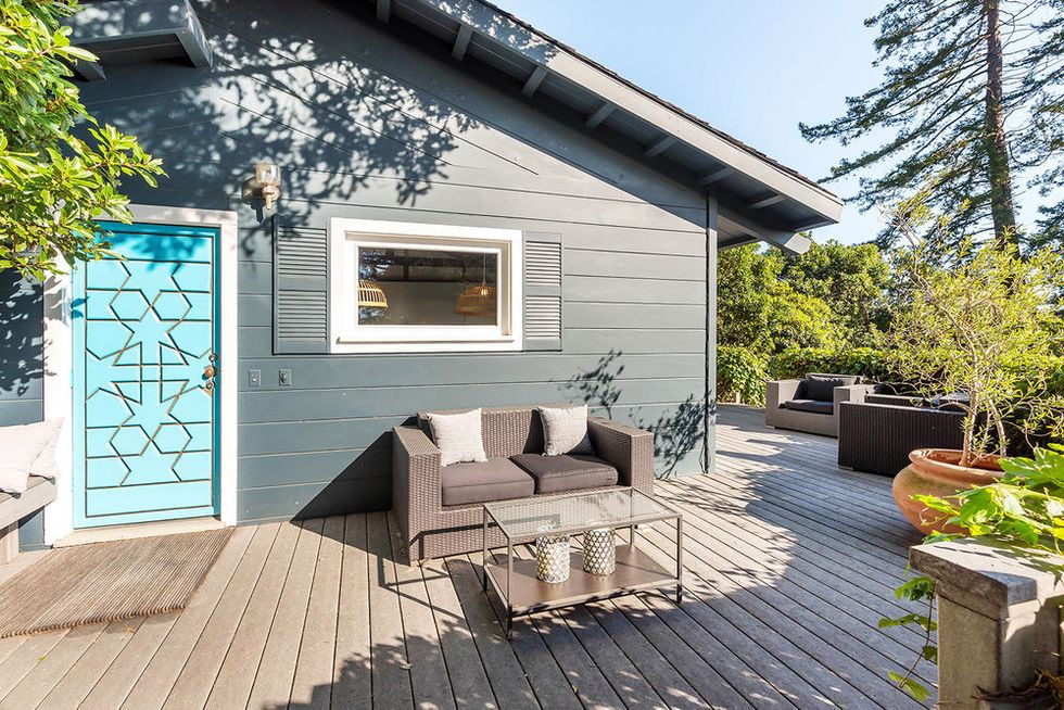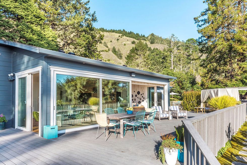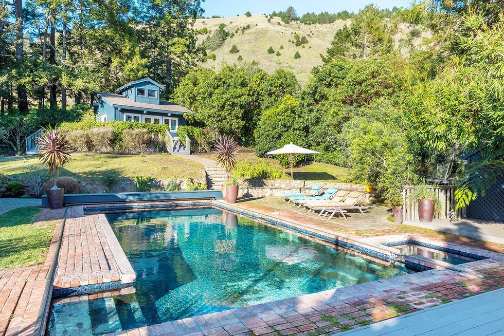 Now the house features a heated black-bottom pool and spa, outdoor stone fireplace, viewing deck and vaulted ceilings surrounded by the redwoods and California poppies of Mount Tamalpais State Park.