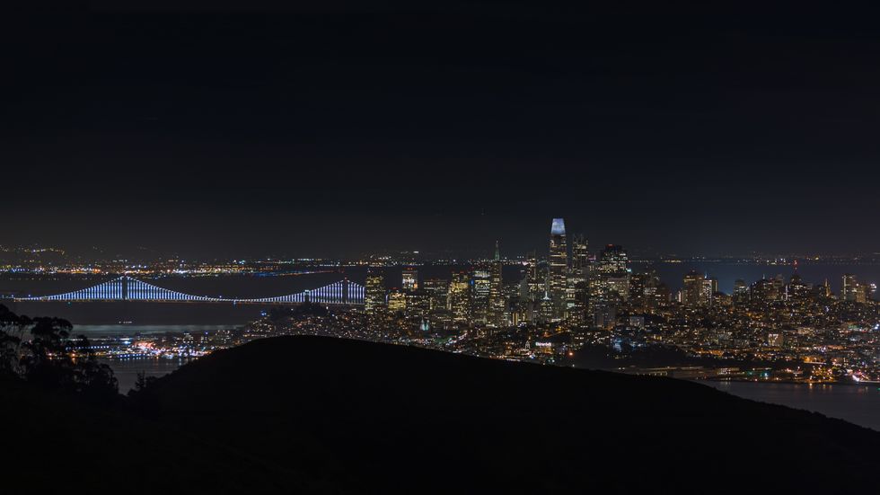At more than 1,000 feet above the city atop Salesforce Tower, Day for Night, composed of 11,000 tiny twinkling lights, is meant to be seen from a 20 mile radius—all the way to Sonoma County—and is even supposed to be visible from airplanes, satellites and spaceships, according to Campbell. But this week, it's dramatic plug-in was barely seen by onlookers in SF due to uncooperative weather.