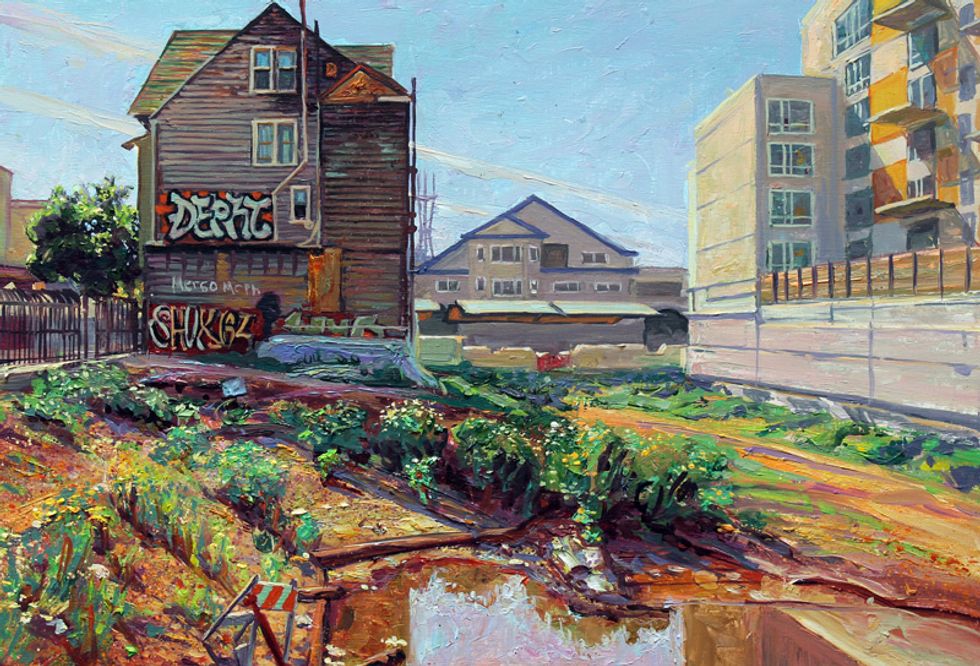 A series of small-scale plein air paintings, depicting San Francisco's Mission District, by Anthony Holdsworth will be on display in this solo show. An image of the vacant lot at the corner of 22nd and Mission Streets sets the tone of the exhibit; it was there that, until last year, a massive mixed-use building housed 62 long-term tenants and nearly a dozen small local retail businesses. Holdsworth aims to paint us a reality check, if you will. // Luna Rienne Gallery, 3318 22nd St. (Mission), lunarienne.com