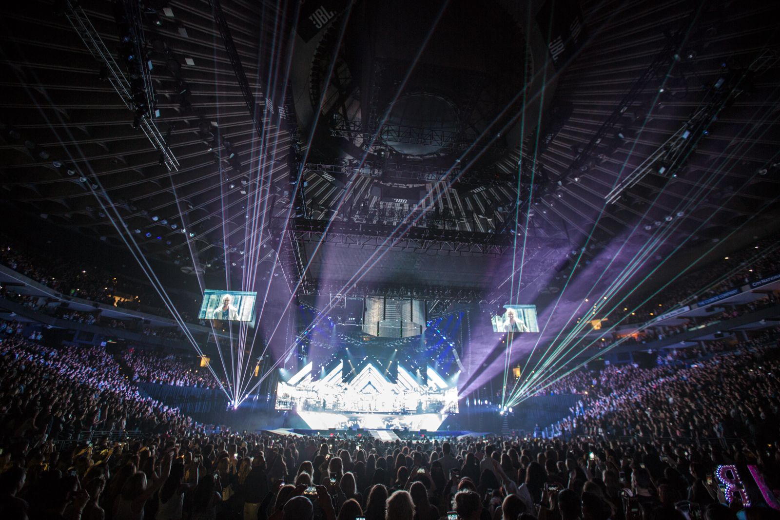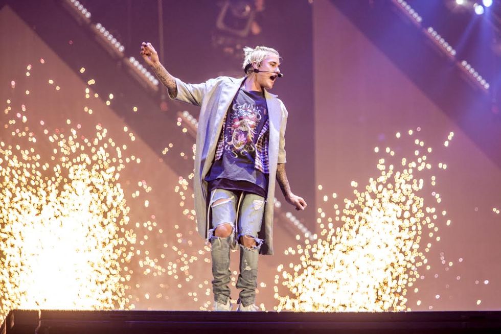 Biebs has also shifted away from choreographed dances that follow cheesy narratives (those of you who saw him in 2013, know what we mean), to full on lasers and pyrotechnics. The performance of "Where Are U Now" included literal fireworks on stage and in the final song, "Sorry," fake rain fell from the sky. In fact, he only played three songs that weren't on his most recent album: "Baby," "One Less Lonely "Girl," and "As Long As You Love Me."