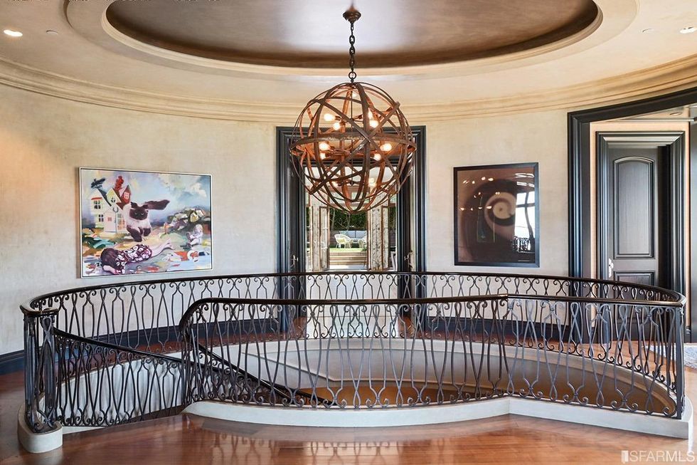 With seven bedrooms and eight bathrooms, the home is pure luxury, with no detail left untouched. There are elaborate coffered ceilings, walnut floors, 14 sets of mahogany French doors, and an OMG serpentine staircase.