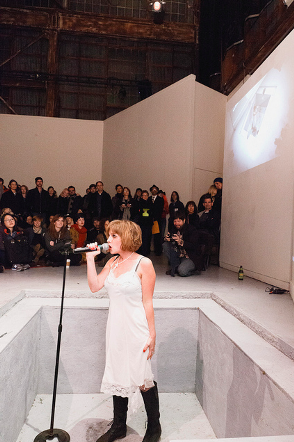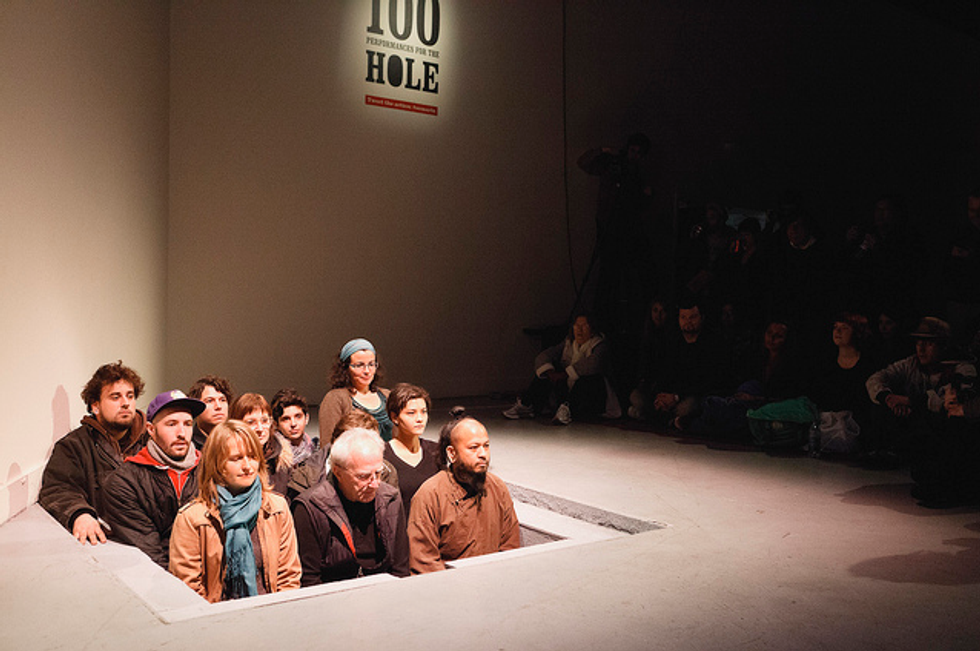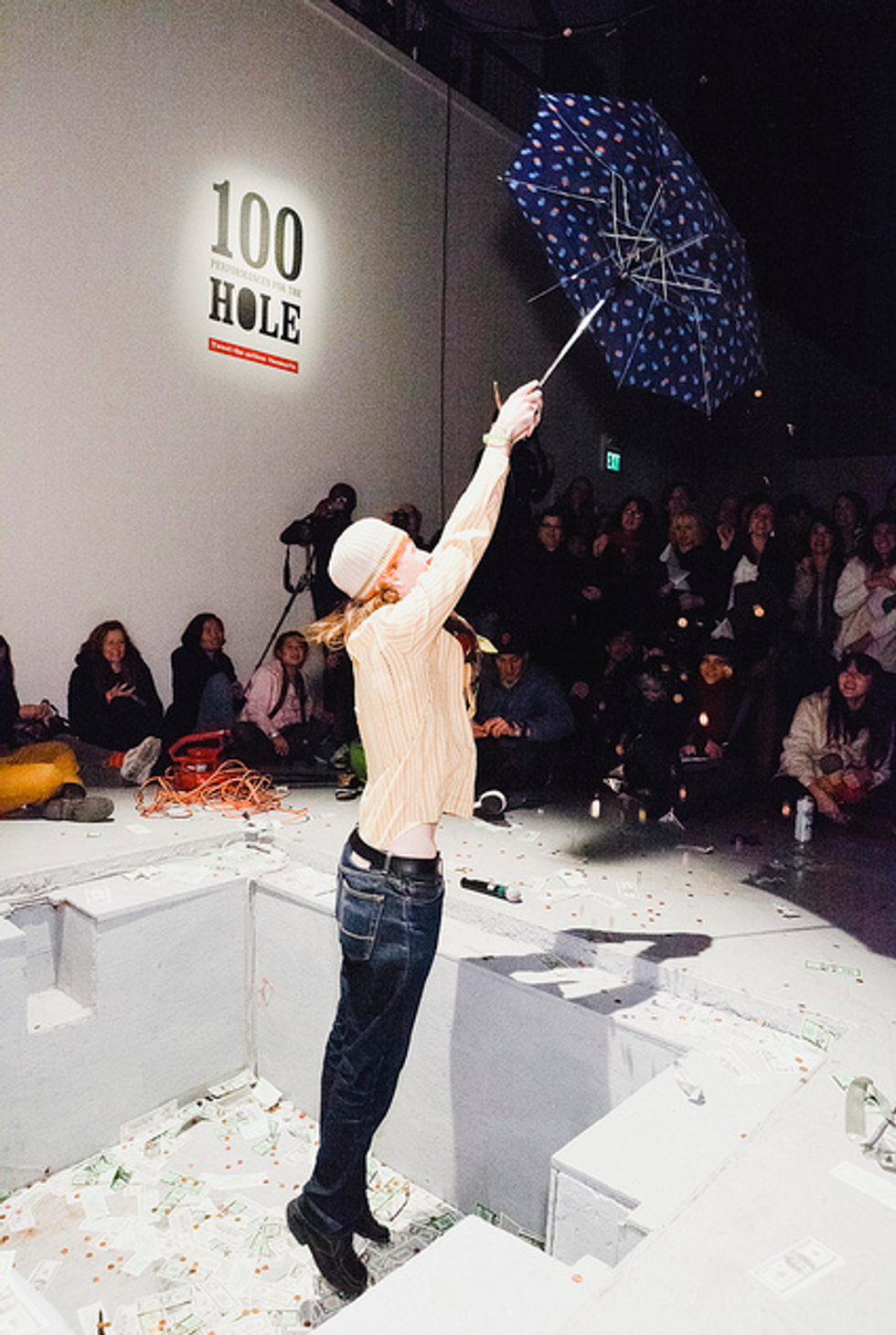 I've come to rely on SOMArts for a running calendar of envelope-pushing events and exhibits (i.e. the Underground Market, monthly Feast of Words literary potlucks, annual Dia de los Muertos extravaganza, not to mention all of the exhibits). A few years ago, curator and gallery director Justin Hoover clued me in to a show idea he was toying with that would make unprecedented use of SOMArt's exhibition space. He walked me over to an old sand-casting pit (from the building's days as the Union Machine Company) in the middle of the gallery and told me he wanted to run a performance art marathon inside the hole—literally. I can't say that I was surprised—Hoover's mind is always working outside of the box to come up with ways of challenging traditional notions of and forums for art. His idea evolved into 100 Performances for the Hole (a previous iteration took place in his parents' garage), an art-a-thon of 100 two-minute mini shows from dusk until the middle of the night.