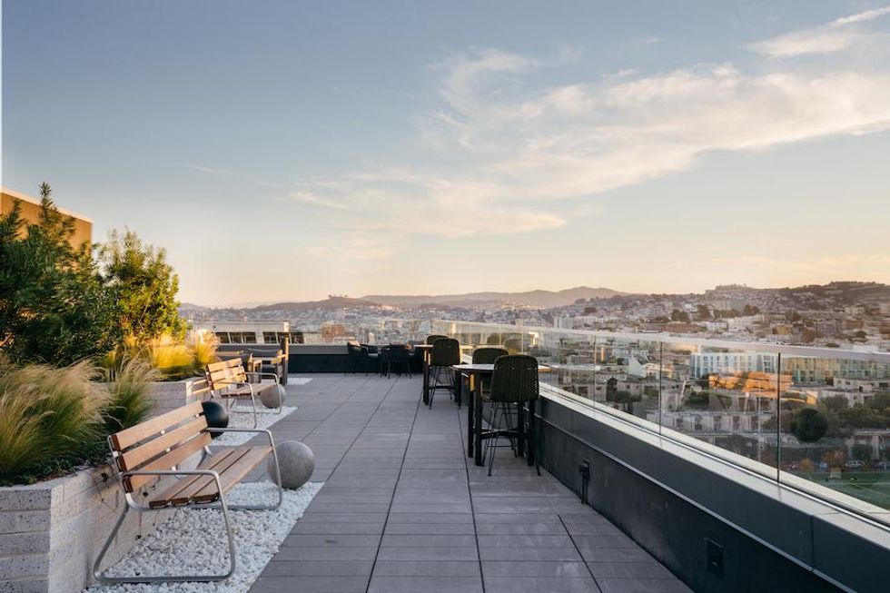 Whether indulging in the surrounding green space or taking in panoramic views of City Hall from the 6,000-square-foot rooftop terrace—complete with a central fire pit, barbecue, and dining area—life at Konrad on the Park evokes the culture and charm of SF's north side.
