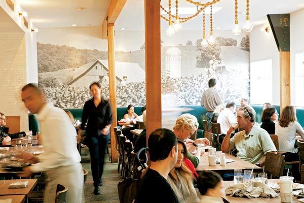 Once in LA, our first stop is Farmshop, the Brentwood Country Mart mainstay, which recently opened a Larkspur location. As the first bottle of Robert Sinskey vin gris of pinot noir tumbles into our glasses, the brainstorming begins. Weinberg is a blonde ball of energy, plucking clues from everything—a black-and-white mural and a particularly brilliant bath- room gain her praise—while Puccio nods in approval. Weinberg rattles off ideas, mentally renovating their existing restaurants and beginning to build a vision for a new project as yet to be divulged.