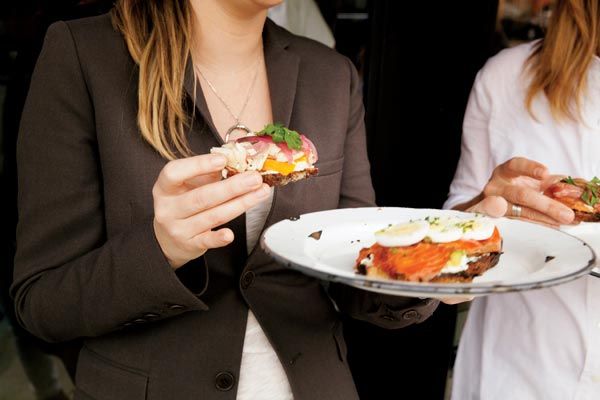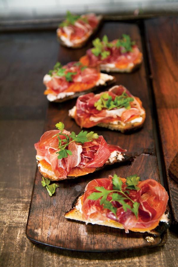 We ponder the possibilities until the food arrives, when business makes way for sheer bliss. A deconstructed egg salad sandwich lands on the table to oohs and ahhs. After a moment to marvel at its novelty, the forks swoop in, yielding bites of supple farm egg flecked with capers, sweated spinach, and dill; inches-thick brioche; and tangy heirloom beets. Conversation moves from landlords and sustainable practices to salmon rillettes that are “straight up Cavalier alley.” And then we discover our common obsession with toast. “Anything could happen on toast,” says Weinberg. “Toast is the Vegas of the food world,” adds Puccio. “I’m going to have some more brioche,” Weinberg mutters, reaching across the table. “You will regret this,” Puccio says, deadpan. It’s at this moment that I’m educated in “The Rules” (see below). (No one can’t get away with an extra bite of anything without a sidelong look from Puccio.) “‘Every day begins with rosé,’ should be a rule…but it’s not,” Weinberg adds, sending us into peals of laughter as we dip into speck ham risotto fritters, a Dungeness crab cake sandwich, piquant pumpkin hummus, and Scottish salmon topped with green tapenade.