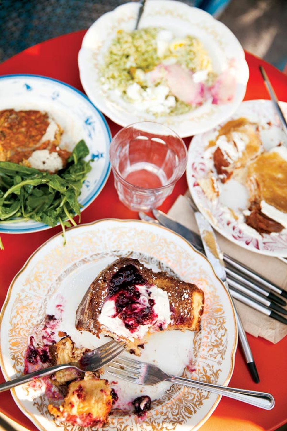 Despite having a detailed itinerary prepared by friend and mentor Jonathan Waxman, whom Weinberg once worked for as maître d’ at New York City’s Barbuto, these women were bound to go rogue, squeezing in more stops between meals. With the help of Uber, we navigate from poached eggs poolside at the Viceroy Santa Monica, to open-faced toasts at Venice’s Gjelina Take Away, to power brunch at West Hollywood’s Cecconis, guided as much by proximity as word-of-mouth suggestions. Nancy Silverton (of Osteria Mozza and Pizzeria Mozza) urges us to fit in Sqirl, a popular brunch spot on the edge of Silver Lake, to our ultimate pleasure. It’s become clear after overindulging in pear butter–stuffed French toast and a mind-bending breakfast rice bowl that Rule #2 is more of a guideline than a hard-and-fast rule.