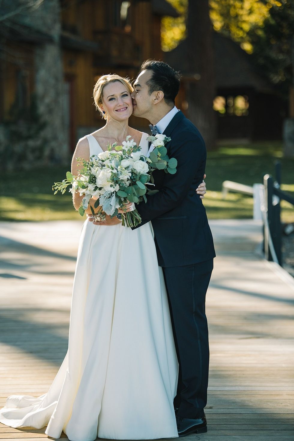 Once the couple were engaged—at the foot of the Golden Gate Bridge, with their French bulldog, Ziggy, in tow—they knew they wanted wed in Tahoe, where they skied every winter and basked in the sun during summer. They found their venue at West Shore Cafe and Inn.