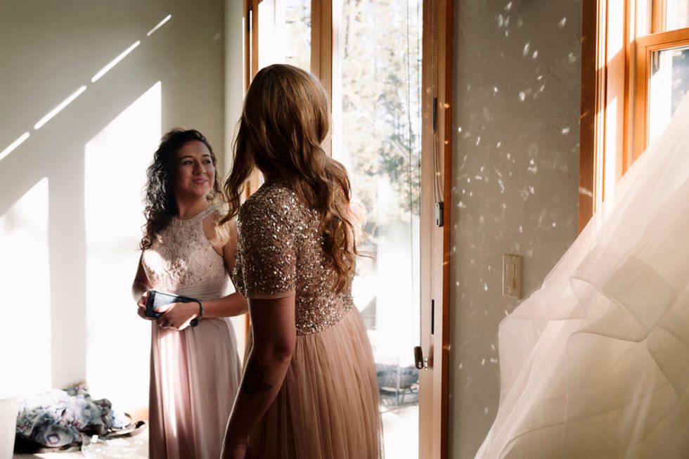 The two rented a waterfront house where the bridal party got ready upstairs; meanwhile in the kitchen, the groom and his buddies drank whiskey. They wanted to keep it "chill," with an emphasis on spending time with friends and family.