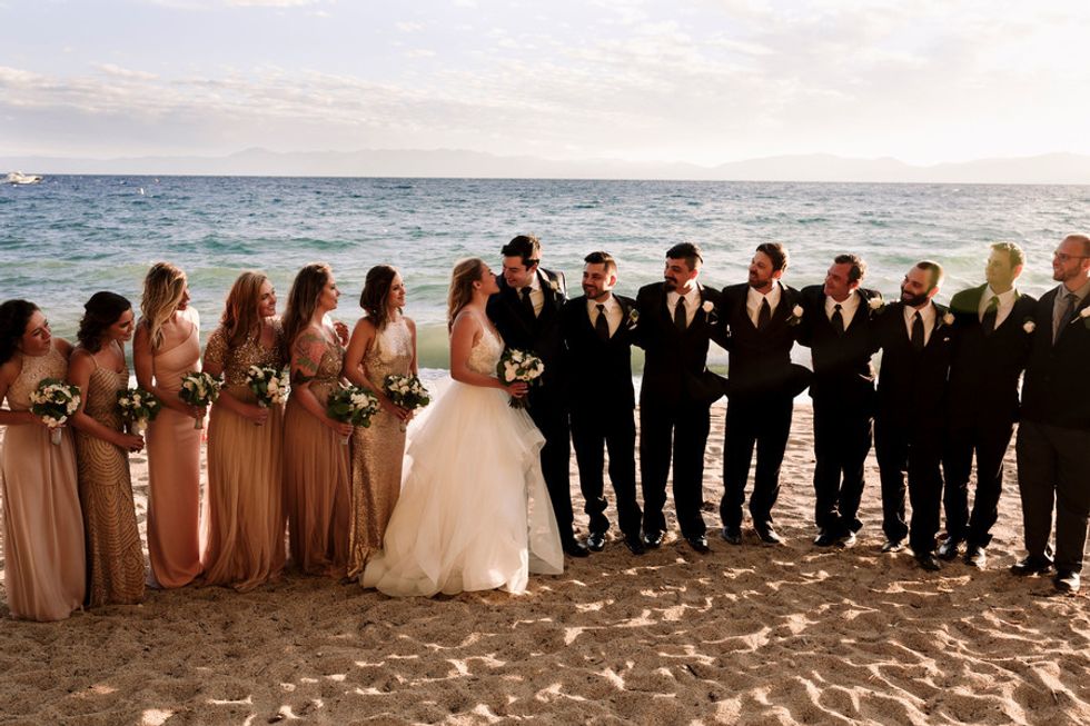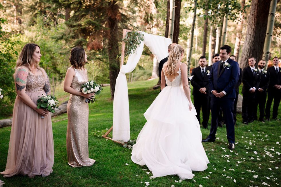 Texans Rebecca Childers and Matt Grussendorf met at Lake Tahoe, so it felt fitting to them to return lakeside for their big day—and what more could a couple want beyond a stunning grove of trees, a beach for photo ops, and snow-capped mountains in the distance?