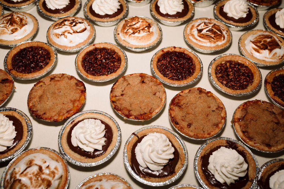 Taking advantage of the last bit of light, they captured their first moments as husband and wife on film down by the water before it was back to the grove, now aglow with paper lanterns, string lights, and candles, for dancing and pie.