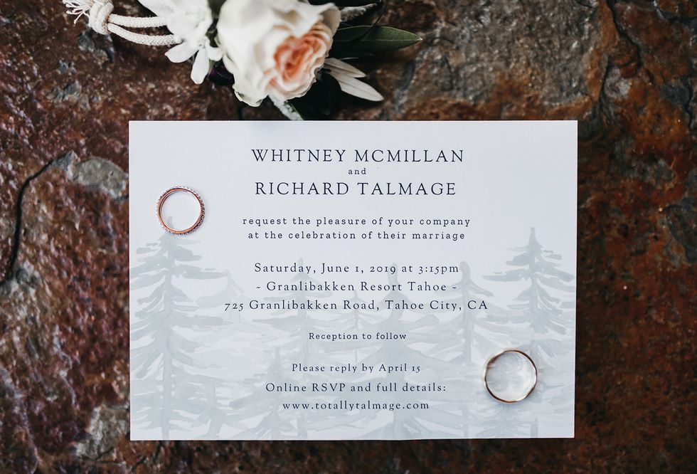 Tahoe would prove to also be the perfect wedding venue for the pair; Richard had grown up coming here, and the place would offer plenty of activities for the couple's out-of-town guests. They chose Granlibakken Resort as home base.