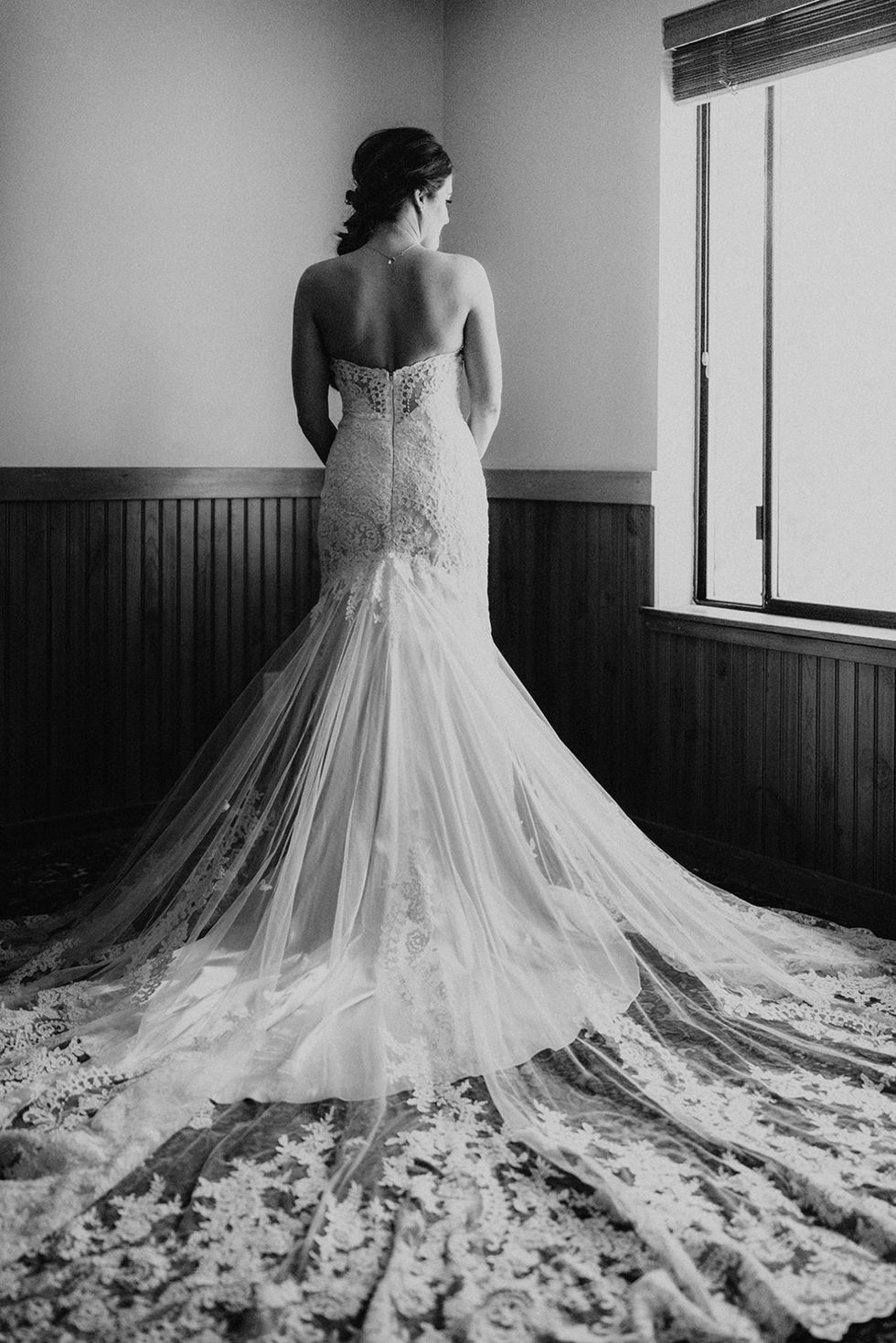 The two exchanged vows beneath a blooming arch and walked back down the aisle as newlyweds surrounded by bubbles. Afterwards, they took photos on the pier before moving inside to the Big Pine Lodge for toasts and cupcakes. Outside, rain began to fall and made its way onto the only-partially covered dance floor. "I've never danced so much in my life."