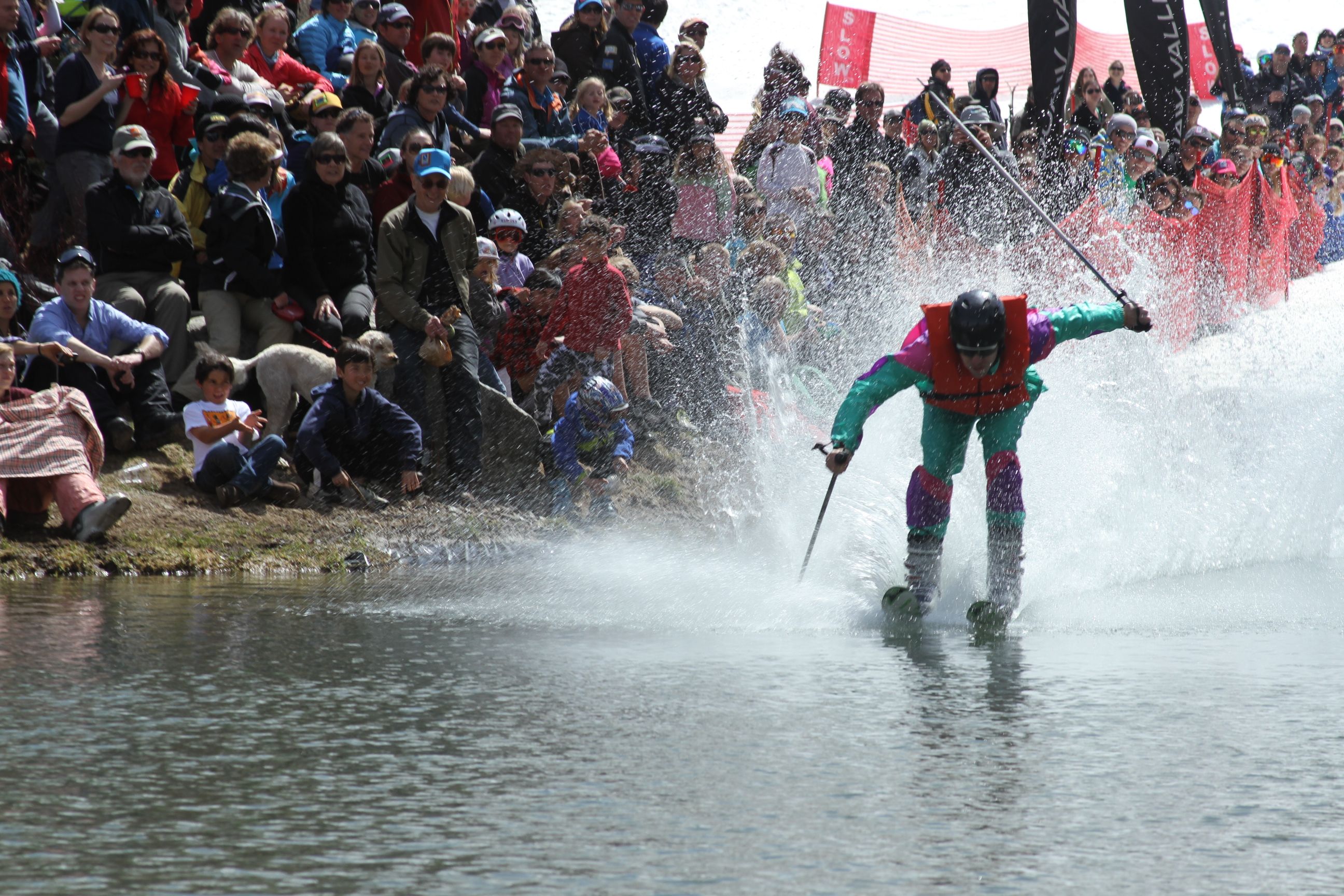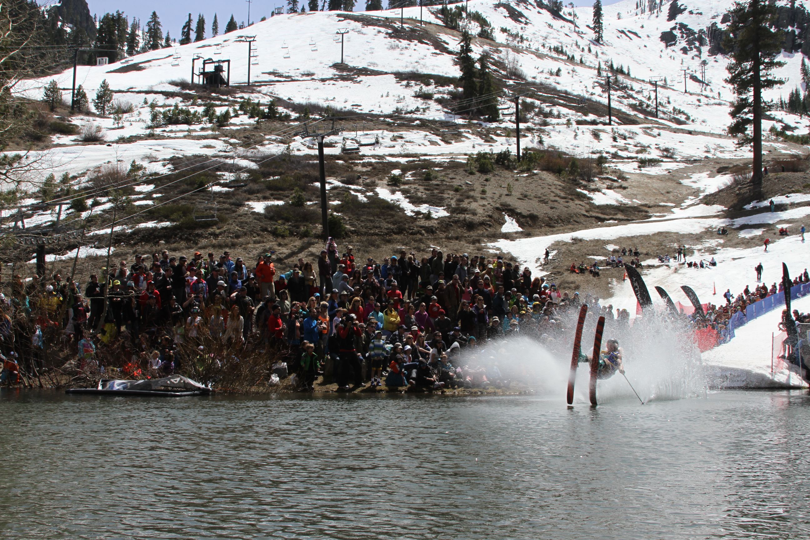 For more proof of the fun of spring skiing, check out this series of photos above of spring conditions, and Squaw's amazing Cushing Crossing pond-skimming event where snowboarders and skiiers tried to skim across the water and make it to the other side.