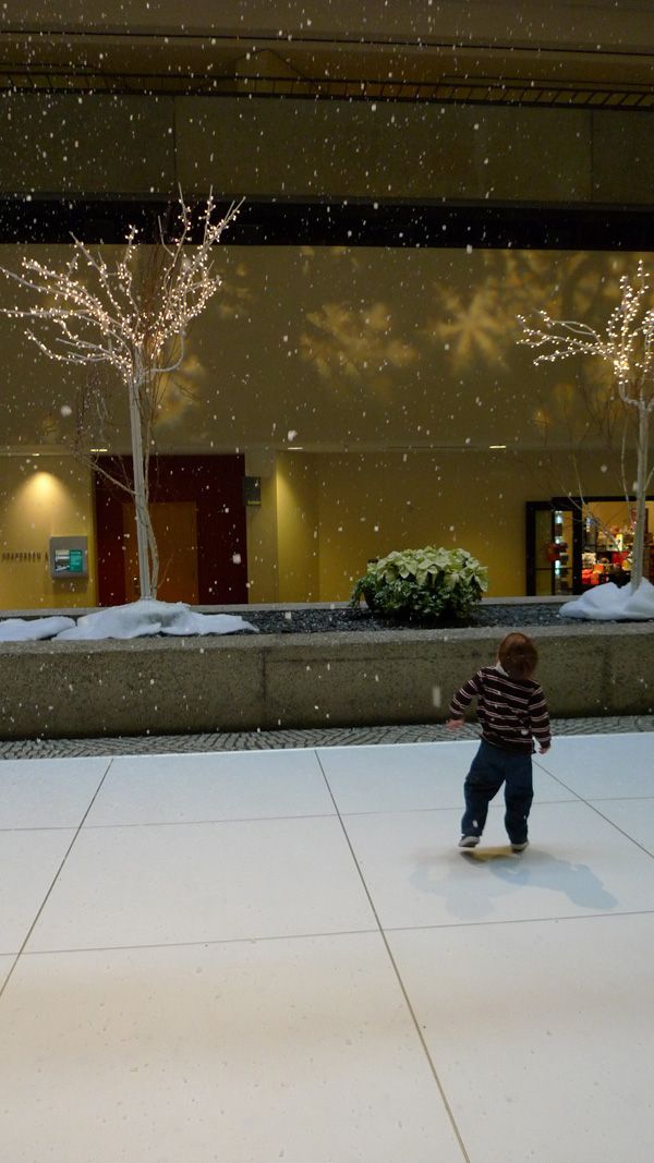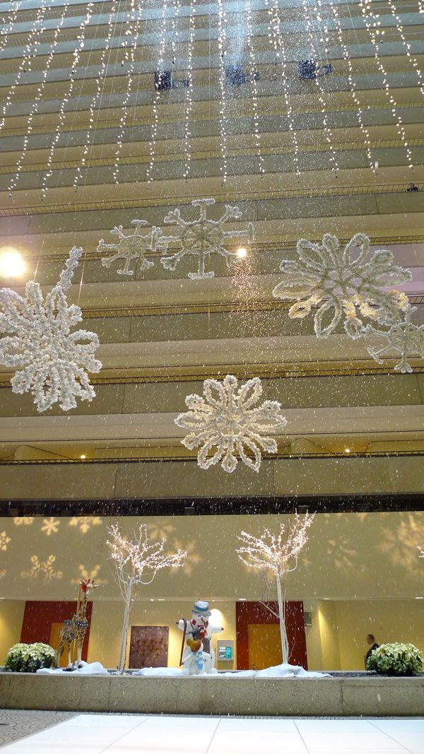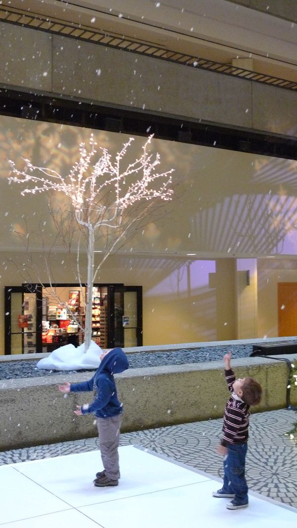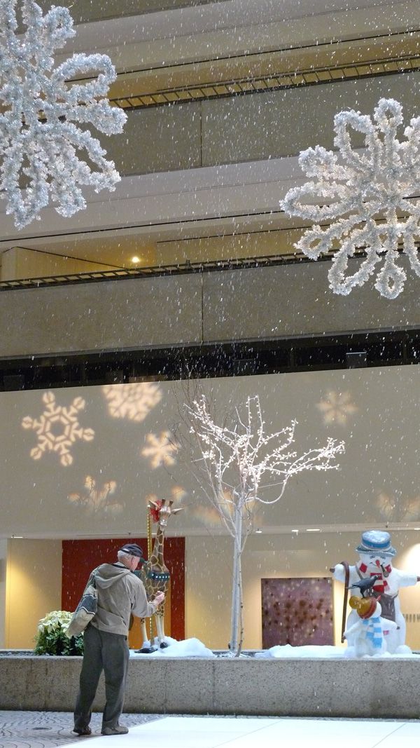 The snow will be falling through New Year's Eve, so drop by the Hyatt's magnificent atrium filled to get a concentrated dose of Christmas action.