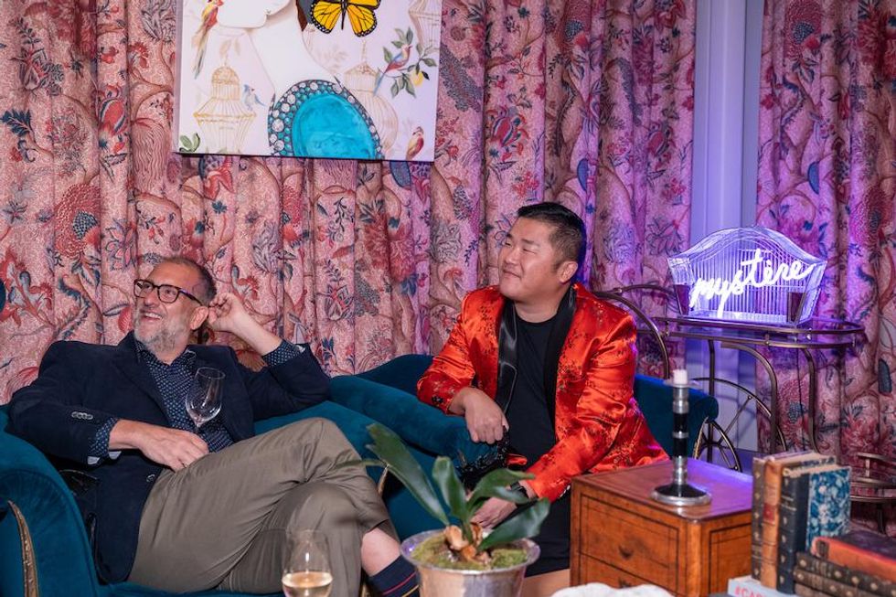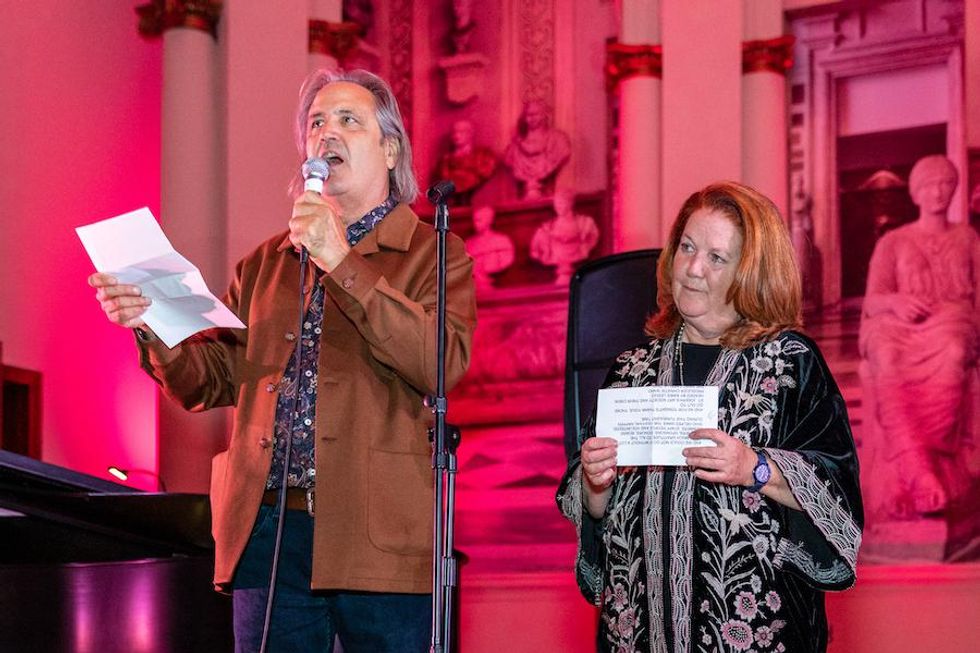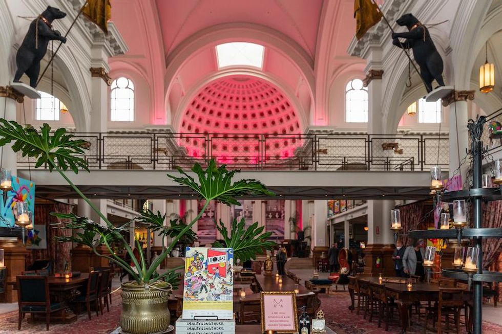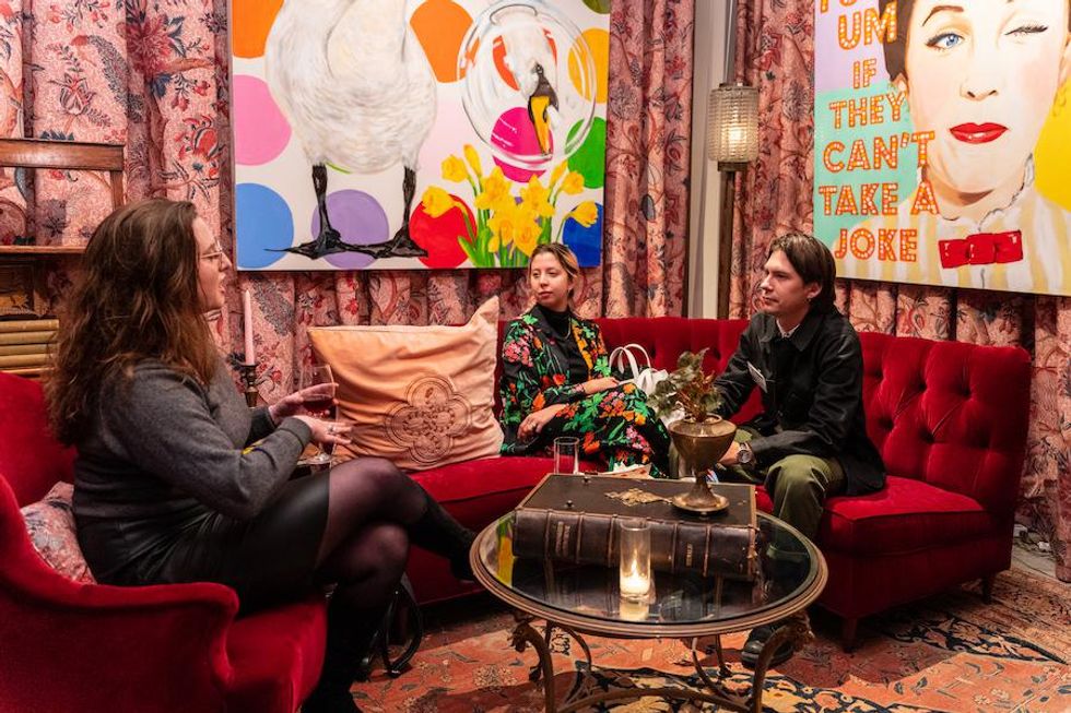 The bombastic brainchild of interior designer Ken Fulk, the hallowed halls of St. Joseph's are a deluge of floral patterns and leopard print and sculptures of live-size bears standing guard. While the church has been seriously redecorated, the original architecture remains, full of alcoves and secret rooms for smaller groups to congregate. Pop-art paintings and sculptures filled the space thanks to the Society's current art exhibition of works by Ashley Longshore. St. Joseph's might be a secular, even iconoclastic institution now, but there was a sense of reverence and awe with which the community came together to celebrate literature.