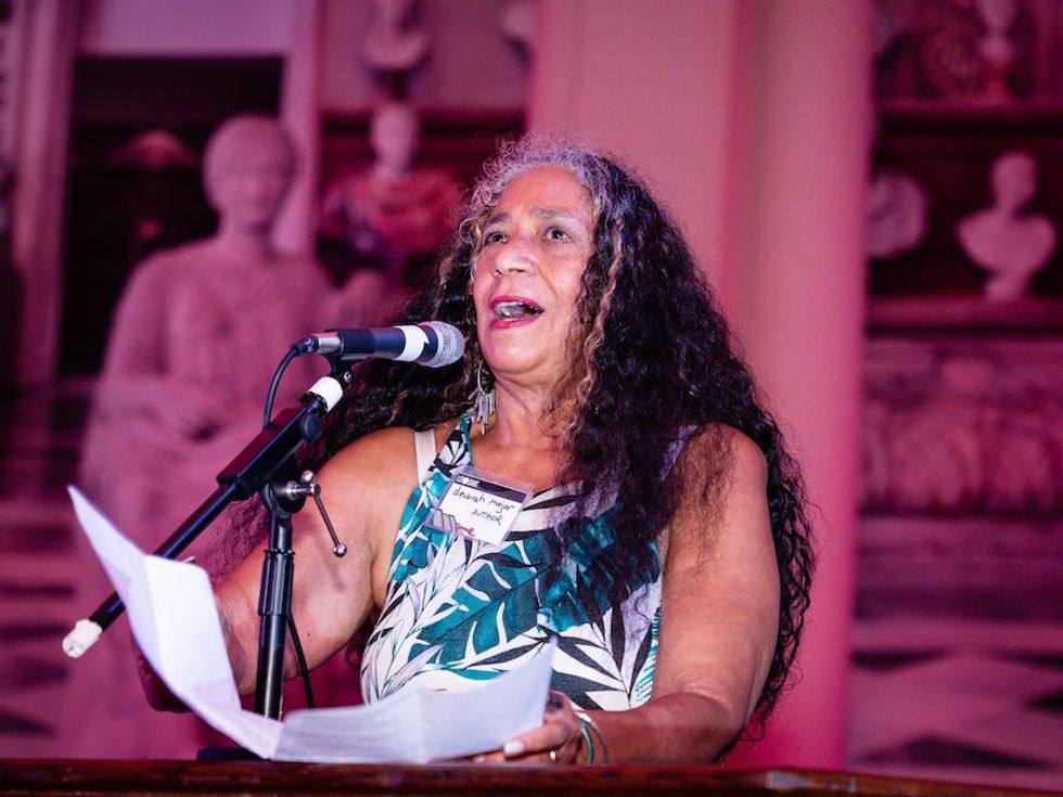 In the evening of carousing—complete with free wine, tacos, and live music—San Francisco's third poet laureate Devorah Major performed an invocation to officially commence the festival. In her poetic speech, Major celebrated the diversity of the local literary community while acknowledging rampant cultural and historical issues, from racial discrimination and the lack of reliable education to the twisting of truth and celebration of ignorance, finishing out her declamation with a rallying cry.