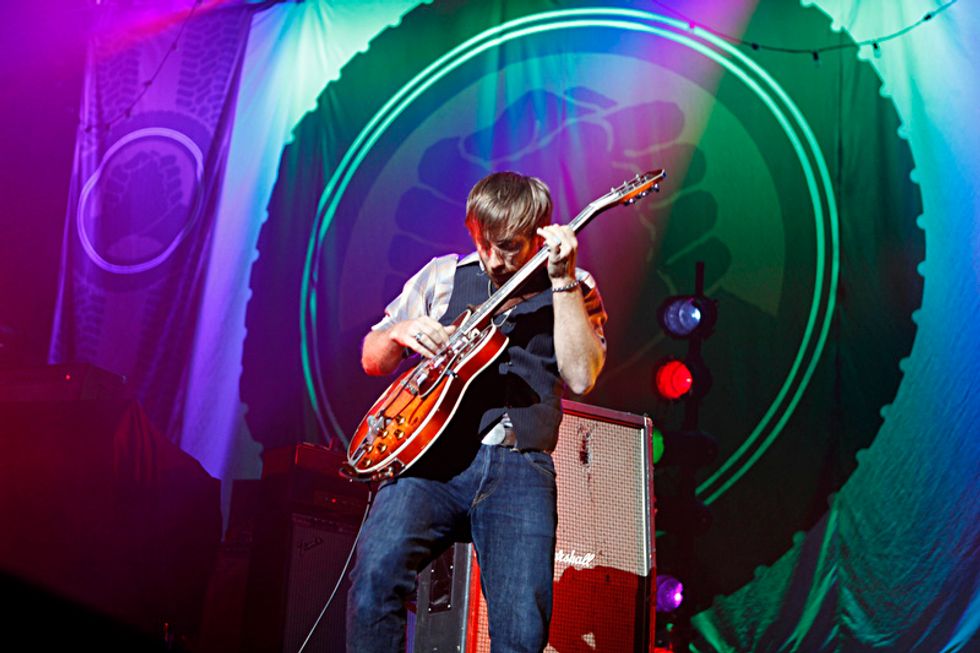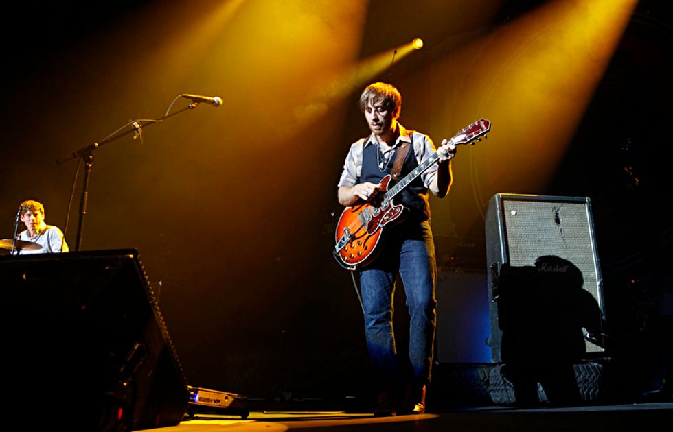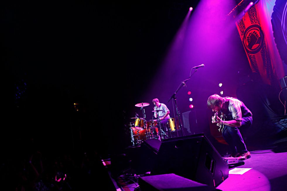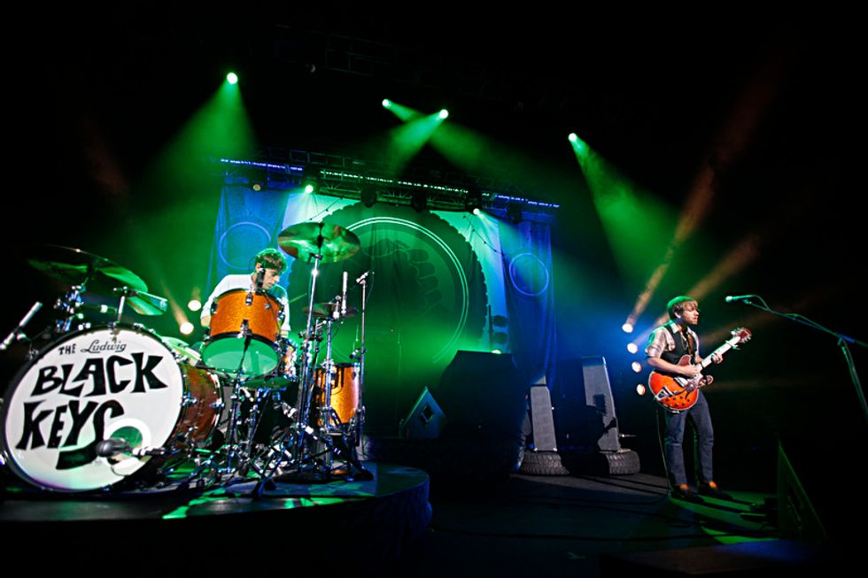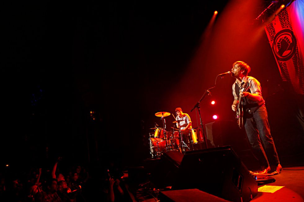 Easily becoming the new American rock standard, The Black Keys, consisting of Dan Auerbach (vocals/guitar) and Patrick Carney (drums/production), know how to arrange a song like some of their most influential predecessors. Their grimy classic rock sound seamlessly blends with the subtle intelligence of their lyrics drawing fans from all walks of life. Present at The Fox last night were anyone from grandma and grandpa reliving their disenfranchised youth, to hardcore metal fans, groupies, and young 20-somethings living out their own Skynyrd-era fantasies, and everyone in between. Auerbach and Carney slammed out over half their set as a duo, only bringing on keys and bass to punch it up a bit for their newer releases off Brothers. Multiple backdrop changes, including homemade Christmas lights outlined in Black Keys fashion, a giant protruding disco ball, and sharpie-d on Black Keys logo onto Carney’s kit kept the visuals interesting, but the energy didn’t subside for even a second. Powerful drums carried with slamming guitar riffs and penetrating vocals, nearly blowing everyone’s minds for over an hour and a half.