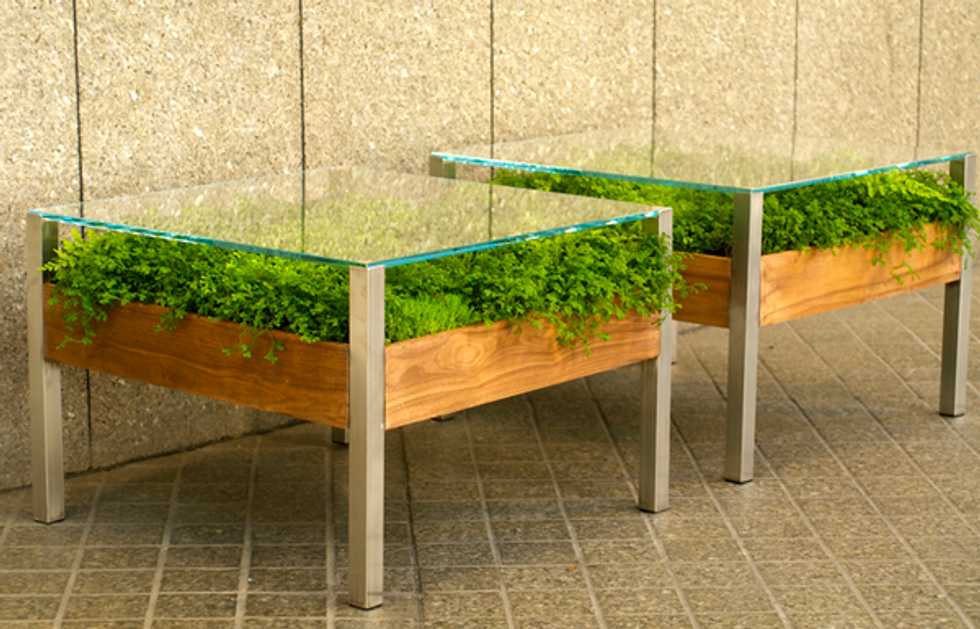 Founder and principal designer David Brenner created the customizable furniture from sturdy materials, such as tempered glass (that can withstand up to 180 pounds of pressure per square foot) and a water-sealed base. He’s no stranger to designing with greenery, having already created living walls for the Metreon Center and McKesson's corporate headquarters. A quick flash of green in the office or home, Brenner says, "delivers the restorative value of nature."
