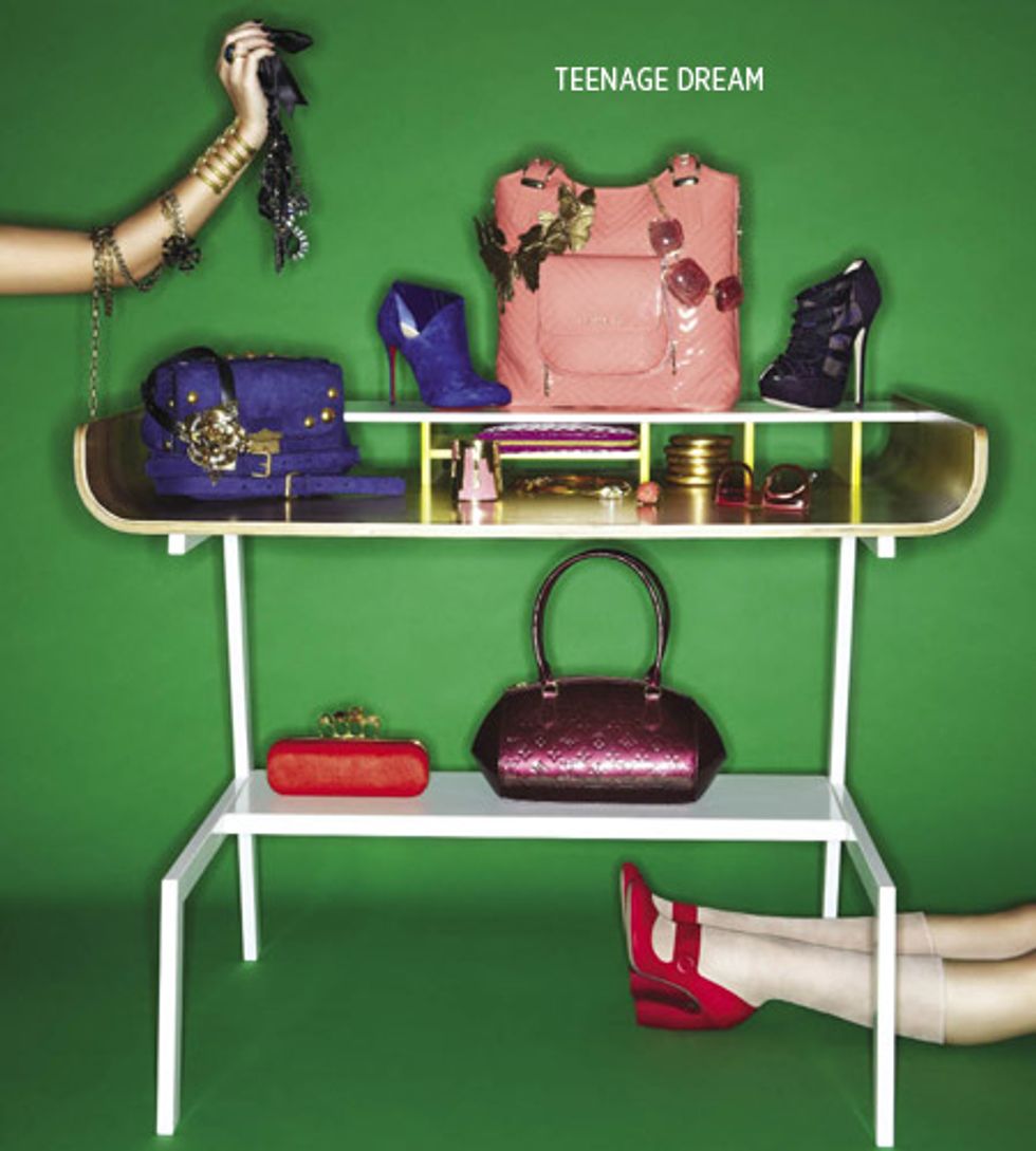 | On Heather (left): Lanvin double chain pendant necklace ($1,190), Jennifer Fisher spine cuff ($1,250), Lanvin necklace with gems and ribbon ($2,950) all at Barneys New York, 415-268-3500; Kenneth Jay Lane ring ($60) at Bloomingdale’s, 415-856-5300. Top shelf (left to right): Christian Louboutin suede ankle boots ($895) at Barneys New York; Ted Baker quilted satchel bag ($220) at Nordstrom, 415-243-8500; Aurelie Biderman butterfly necklace ($3,535) and Kara Ross oversized gem necklace ($395) at Neiman Marcus, 415-362-3900; Jimmy Choo crystal-covered mesh and suede ankle boots ($1,995) at Saks Fifth Avenue, 415-986-4300. Middle shelf (left to right): Alexander McQueen suede satchel ($1,795) at Saks Fifth Avenue; Lanvin gold fleur flower choker ($1,490) at Barneys New York; Kara Ross gold and pink pebble cuff ($370) at Neiman Marcus; Ted Baker vinyl iPad case ($70) at Nordstrom; Herve Van Der Straeten geometric necklace with jewel ($965) at Neiman Marcus; Christopher DeNave Collection vintage bangles by Givenchy ($300 each) at Wilkes Bashford, 415-986-4380; Fendi sunglasses ($395) at Saks Fifth Avenue. Bottom shelf (left to right): Alexander McQueen clutch ($1,975) at Saks Fifth Avenue; Louis Vuitton Sherwood PM rouge bag ($1,520) at Louis Vuitton, 415-391-6200. On Tory (right): Prada two-tone Mary Jane boots ($1,400) at Saks Fifth Avenue. | |