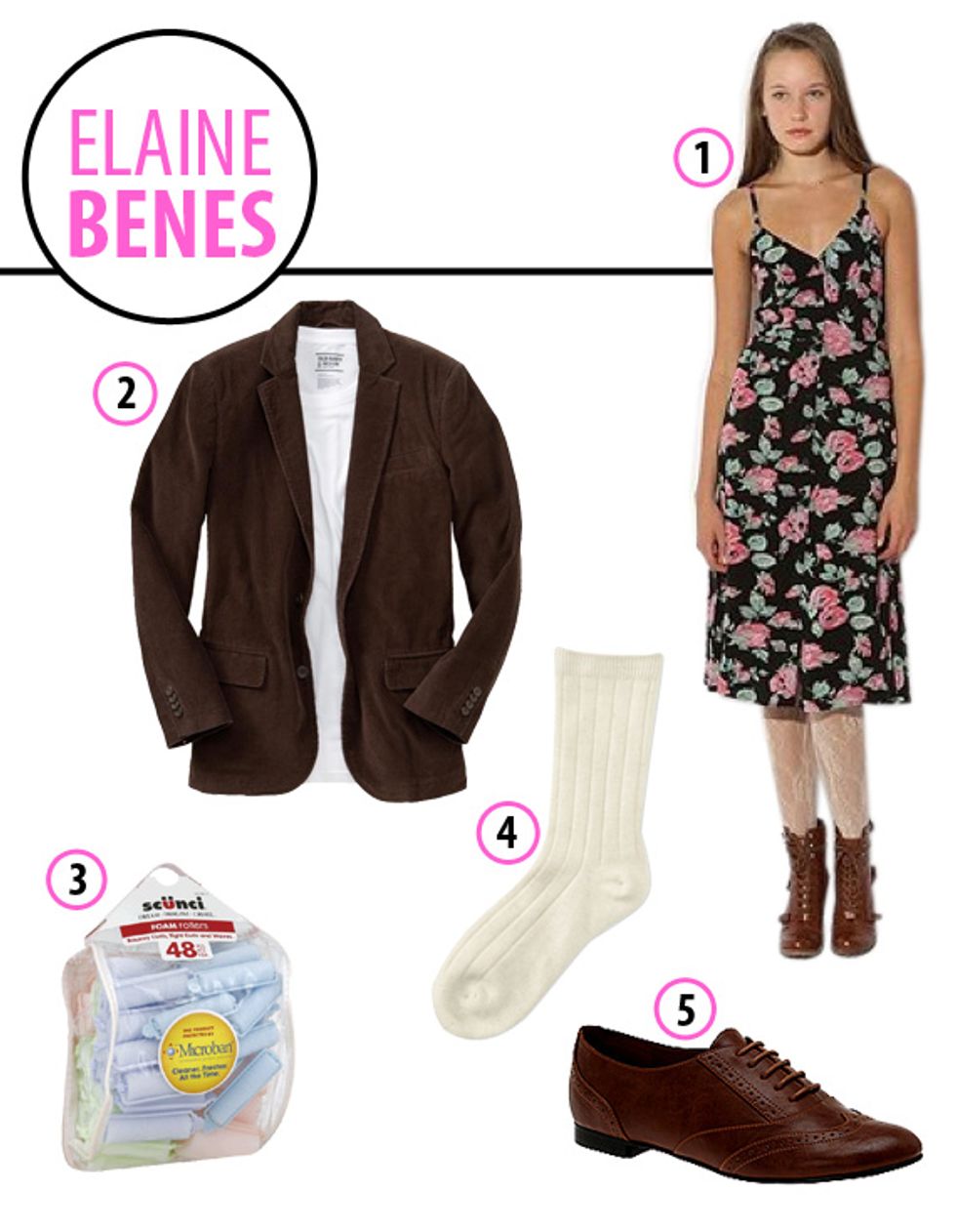 3. Elaine Benes: While Elaine may be the latest downtown muse in NYC, we think she'd make for an excellent '90s throwback costume. Just pick up a floral mid-calf dress from a thrift store (or Urban Outfitters), pair with an oversized blazer, socks and oxfords, and convince your friends to dress up as the rest of the crew. There's a Kramer in every group, right?