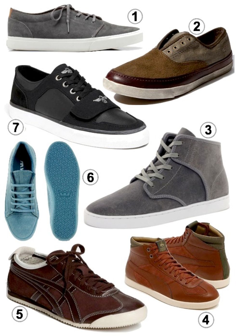 From all-suede high-tops (#3) to mixed-fabric low-tops (#5, #7), the textures and colors are perfect for fall -- plus, the soft leather adds sophistication to classics like Vans (#1) and Converse (#2). Here are our top picks.